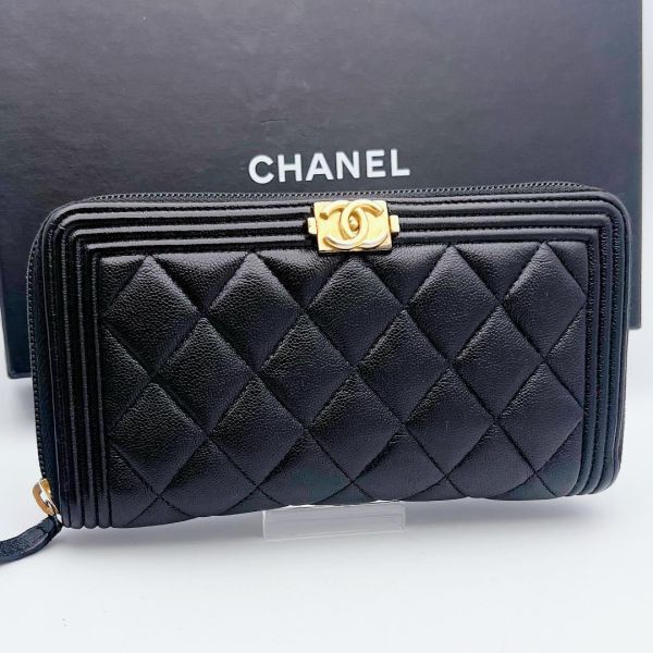 『ボーイシャネル キャビアスキン ラウンドジップ ウォレット』