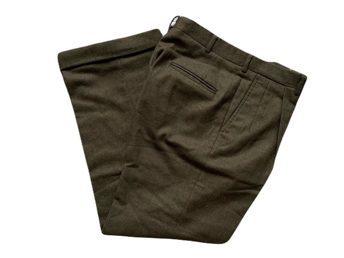 カラーはダークカーキグリーン、中厚程度の目が詰まったウール生地を使用しています。