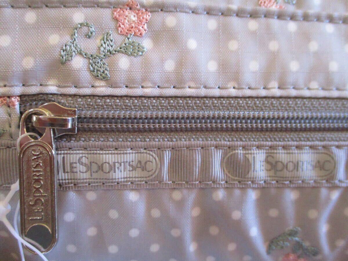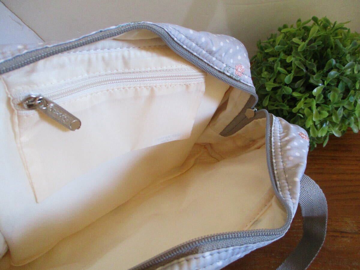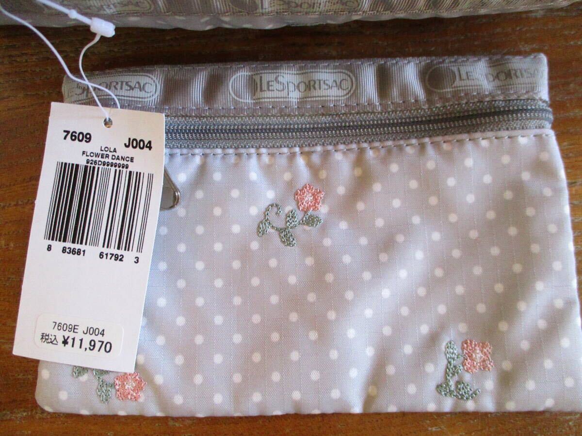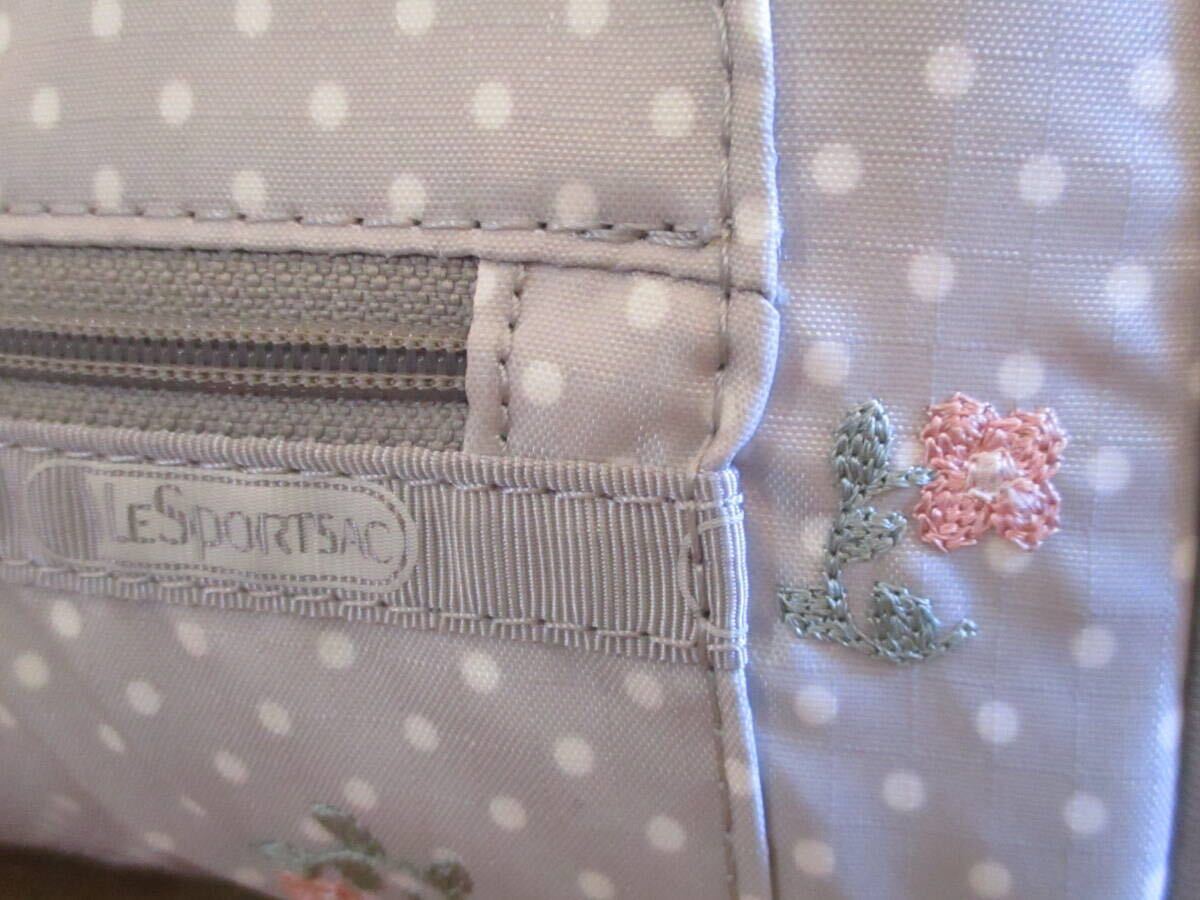 【未使用・送料込】レスポートサック LeSportsac 花の刺繍 水玉 ライトグレー ミニボストン&ミニポーチ 値札付 定価11,970円 人気 軽量 | |||