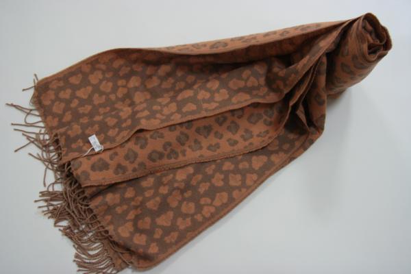 主に百貨店や専門店で取扱っているレオパード柄(豹柄)の大判ショール、ひざ掛け、マフラーです。なお、一点一点の商品を大切に袋入りの状態にて保管しておりますので多少の折りシワにつきましてはご了承下さいませ。