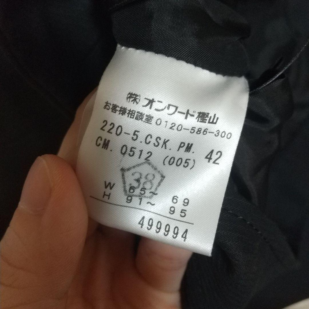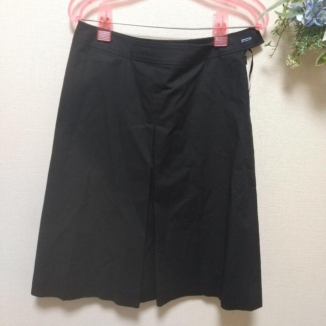 シンプルで洗練されたストライプデザインのブラックタイトスカート、サイズ42。