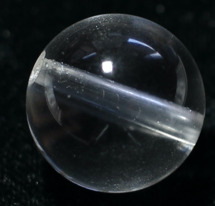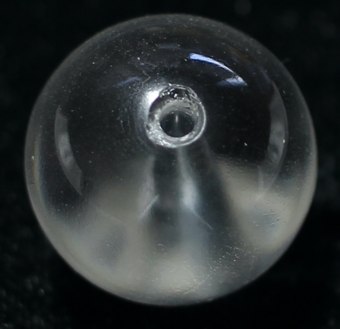 水晶の玉です。0.8mm程度の貫通穴が空いています。