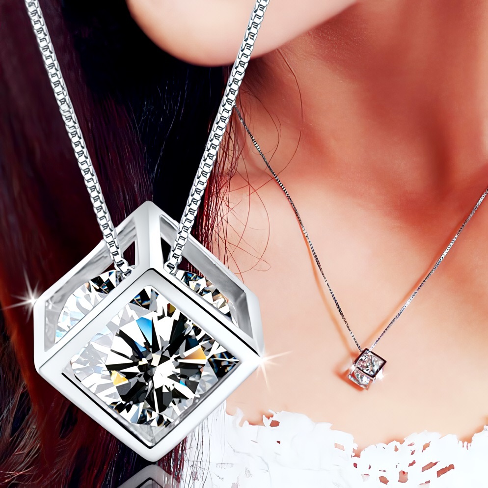 新品1円~★送料無料★輝くダイヤモンド キューブ七色 プラチナ仕上925シルバーネックレス誕生日プレゼント旅行連休秋祭冬休ギフト国内発送