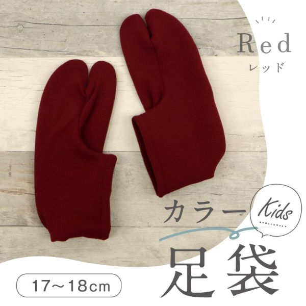 【キッズ カラーストレッチ足袋】 男女兼用 『レッド・17-18㎝』 履きやすいソックスタイプ ストレッチ靴下 七五三 和装小物 k24-41
