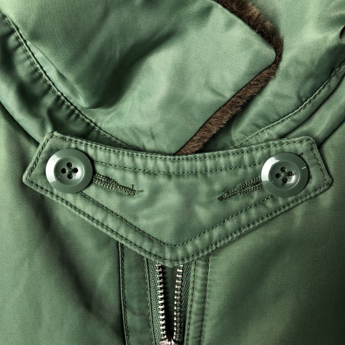 | 表記サイズ: XL 着丈: 57.5cm 身幅: 57.5cm 肩幅: 44cm 袖丈: 67cm ![]() | ![]() ランク:C USEDですので使用感などございますが、まだまだご愛用していただけます。 古着という事をご理解の上ご注文よろしくお願いします。 【状態追記】 ●前、ジップエンドテープに剥がれ 両袖口・裾に汚れ 右袖に糸抜け 右ポケット口スナップボタンに塗装剥げ ●後、両袖口・裾に汚れ ●内、両袖口・裾に汚れ |