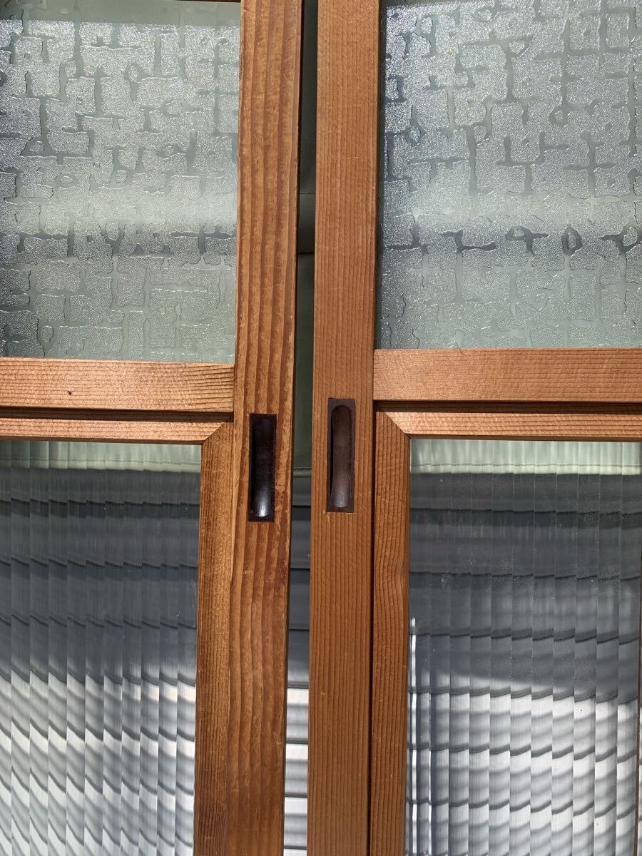 ★大阪引き取り限定★H174cm×W67,5cm ×4枚◆アンティーク◆古い木製ガラス戸◆ 縦波 更紗 古建具 引き戸 サッシ 古民家 昭和レトロ★
