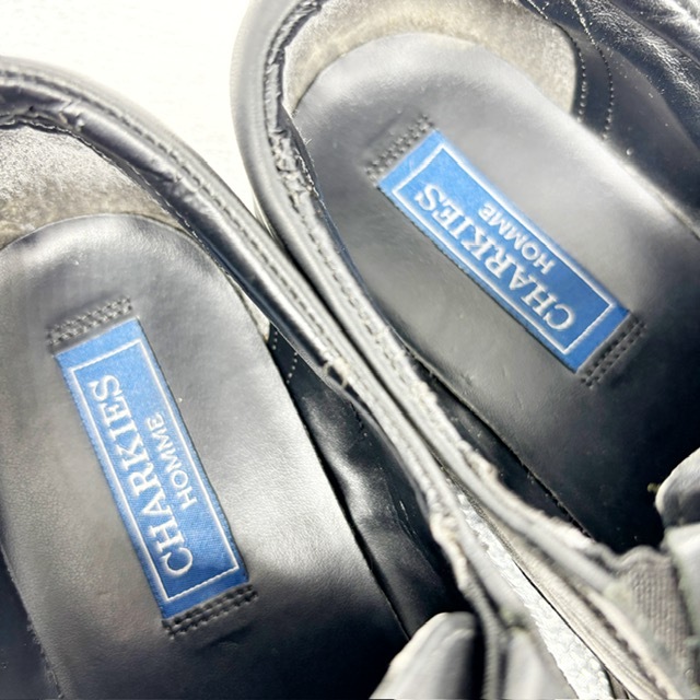 ご覧いただき、ありがとうございます。 オシャレで高級感のあるチャーキーズ CHARKIESのビジネスシューズです。 デザイン性:機能性共に定評のある商品です。 1足押さえてあるとファッションの幅も広がり大活躍するお勧めの商品です。 中古品のため、スレや傷、ヨゴレ等ありますが、その分お値打ちにしております。詳しい状態は画像でご確認ください。 商品のサイズについて 表記サイズ 24.5cm アウトソール全長 約29.0cm 全幅 約9.4cm (素人採寸) ●状態①「外観」 履きジワ、着用に伴う擦れ、傷がございますが、着用に支障はございません。くわしくは画像で確認ください。 ●状態②「ソール・インナー」 インソール内残っています。 ●その他・付属等なし、シューズキーパーは撮影用です。 | |||