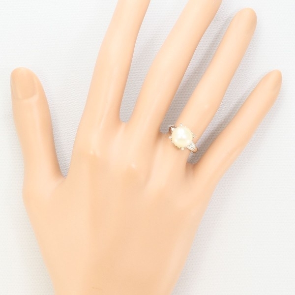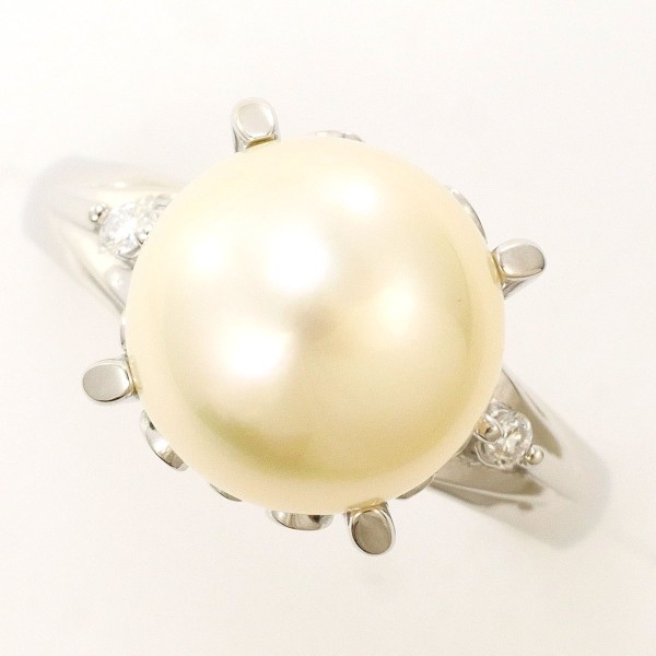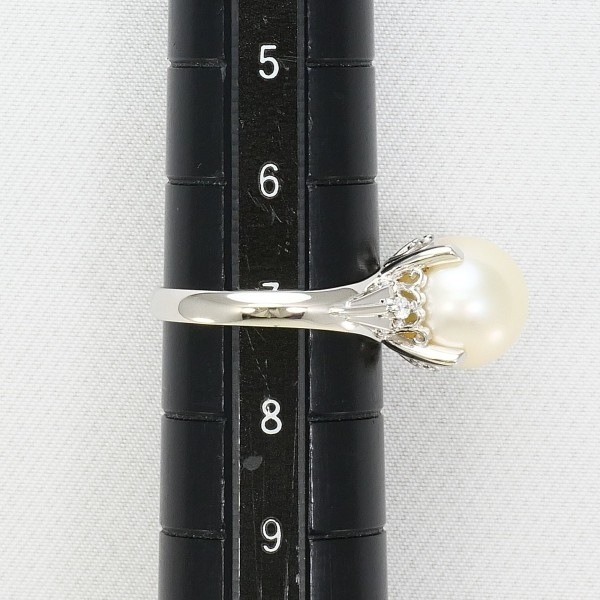 PT900 リング 指輪 7号 パール(真珠) 約9mm ダイヤ 0.02 総重量約3.9g 中古 美品 送料無料 | |