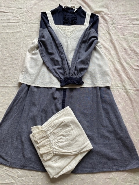 フリルハイネック、ヨークには前立てフリル、ピンタックがクラシカルで即買いしたものです。