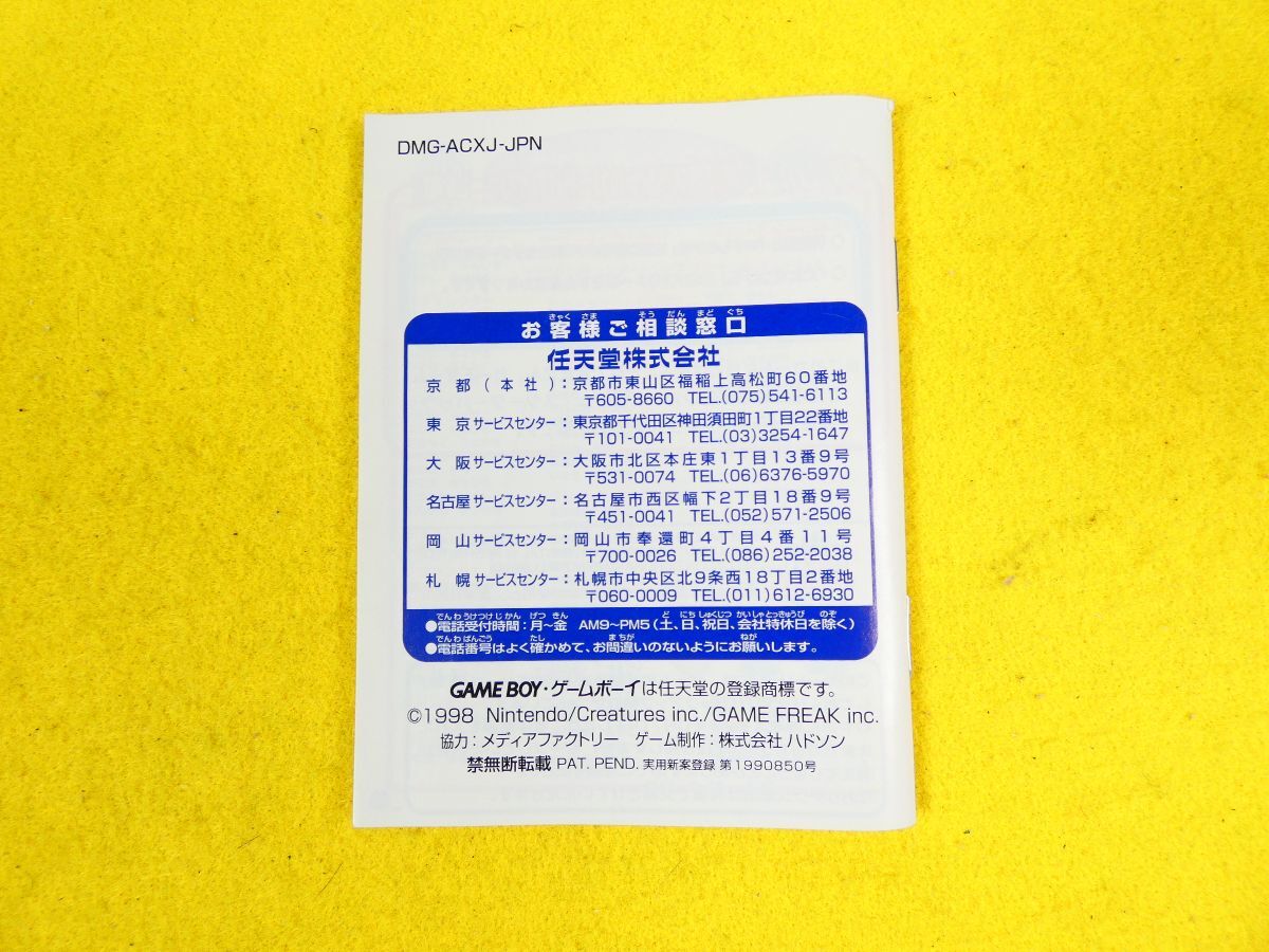 【 (SF-22) Nintendo GAME BOY COLOR ゲームボーイカラー 「 ポケモンカード GB 」GBC ソフト カセット ※動作未確認@送料430円(9)】 ※基本的に金曜午後、土曜、日曜はオークションに関する連絡、発送等全般の対応は行っておりません。翌月曜日から順番になります。対応が遅れる場合が御座います。予め御了承下さい。 (金曜日終了日分の場合も翌月曜から対応です。) ※一番下の「ご注意事項」まで全てお読みになり、ご検討、ご入札をお願い致します。 ■状態:ジャンク品です。 動作未確認です。 経年の傷み、汚れ等ございます。付属品ダメージが強く御座います。 品質、動作保証の無いジャンク品をご理解の上ご検討をお願い致します。 ※出品物、付属品に関しては画像にてご確認いただけるものが全てとなっております。 ※タイトル最後尾の()内は当方の番号です。 素人の目視確認の為、見落としがある場合もございます。 クリーニングはあくまでも簡易的なため、細かな汚れやホコリが付着した状態でお渡しする場合もございます。 ■元払い 発送予定サイズ レターパックライト全国一律430円 ※お支払いはかんたん決済のみになります。 ※同梱に関しましては同日終了日分(同梱可能サイズ160 / 23㎏迄)のみとさせて頂きます。 送料は同梱サイズにより変動致します。 ゆうパック取り扱い不可商品との同梱の場合は佐川急便での配送となります。 ※配送業者、発送方法の変更は承れませんのでご了承願います。 ※下記の【ご注意事項】を御覧頂き、御了承、御理解の上御入札、御検討を御願い致します。 |