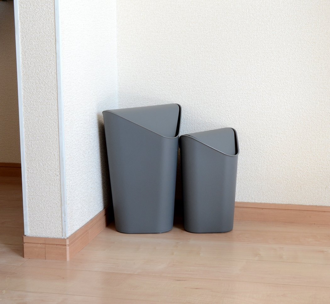 「コーナーカン」という名のとおり角にぴったりと収まる、丈夫なポリプロピレン製のダストボックスです。 お部屋の角にすっきりと収めることができるので、ダストカンの存在が気にならず、お部屋の雰囲気を損ないません。 フタがスイングタイプなのでニオイ漏れを防ぎ衛生的です。またフタは取り外し可能なので、ゴミの入れ替えも簡単です。 ゴミ袋を付属の袋止め具で内部に設置できる仕組みになっているので、外からゴミ袋が見えません。 容量は5L。カラーバリエーションも豊富です。 ※要組み立て(納品時は、本体、フタ、袋止め具がバラになっています。) サイズ:W28×D25.5×H36cm 容量:10L 素材:ポリプロピレン 原産国:中国