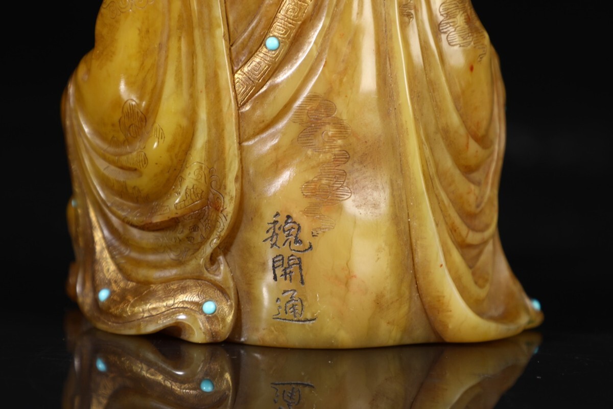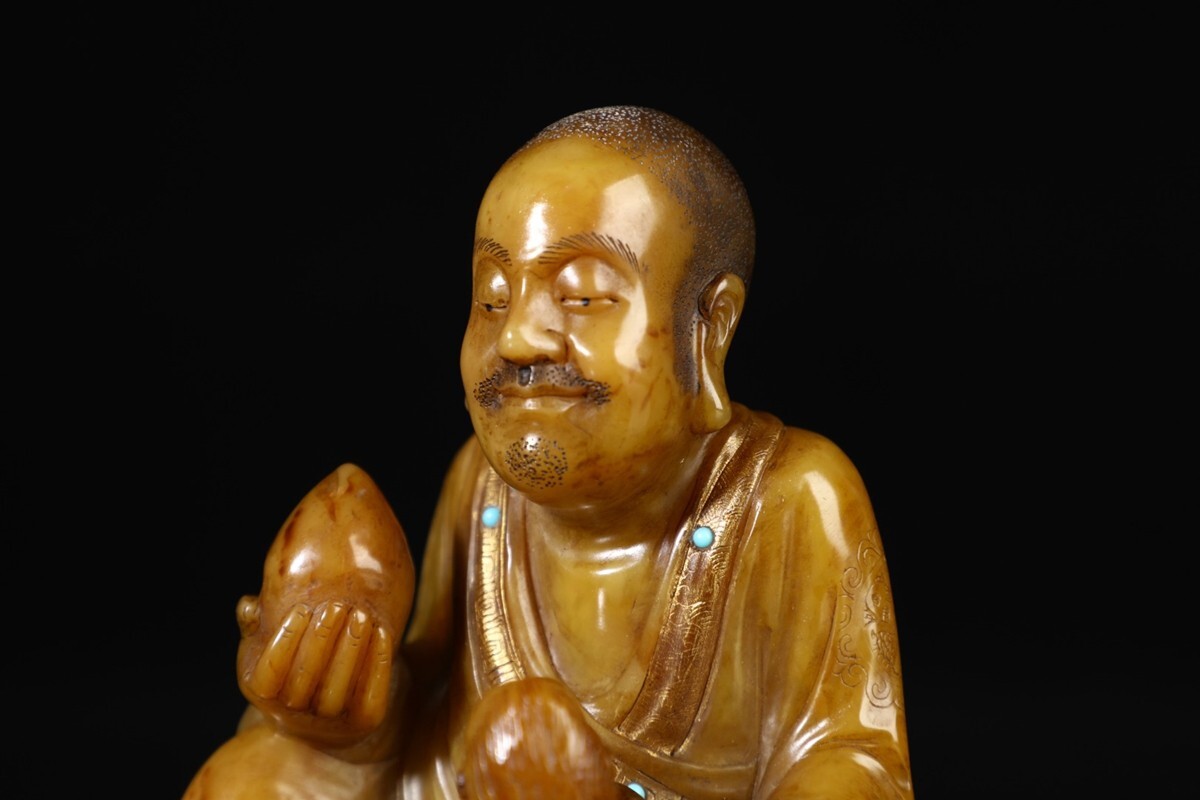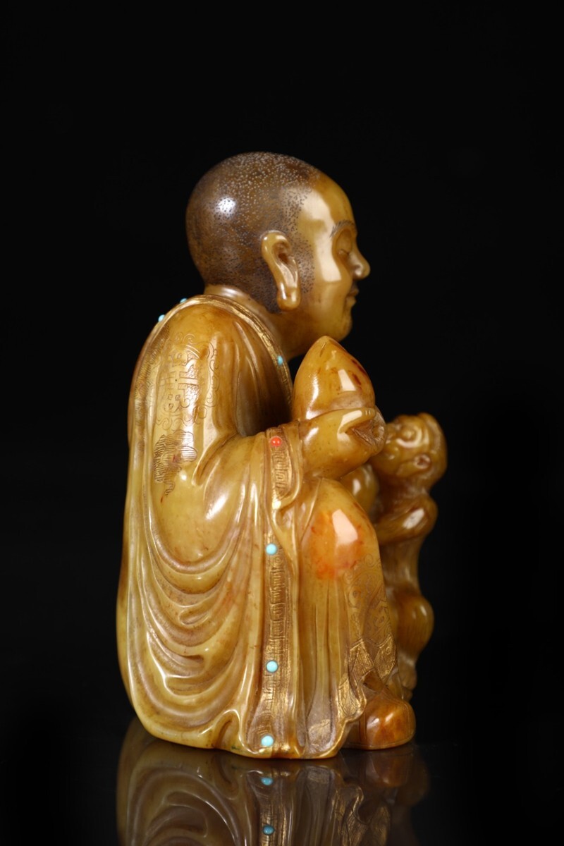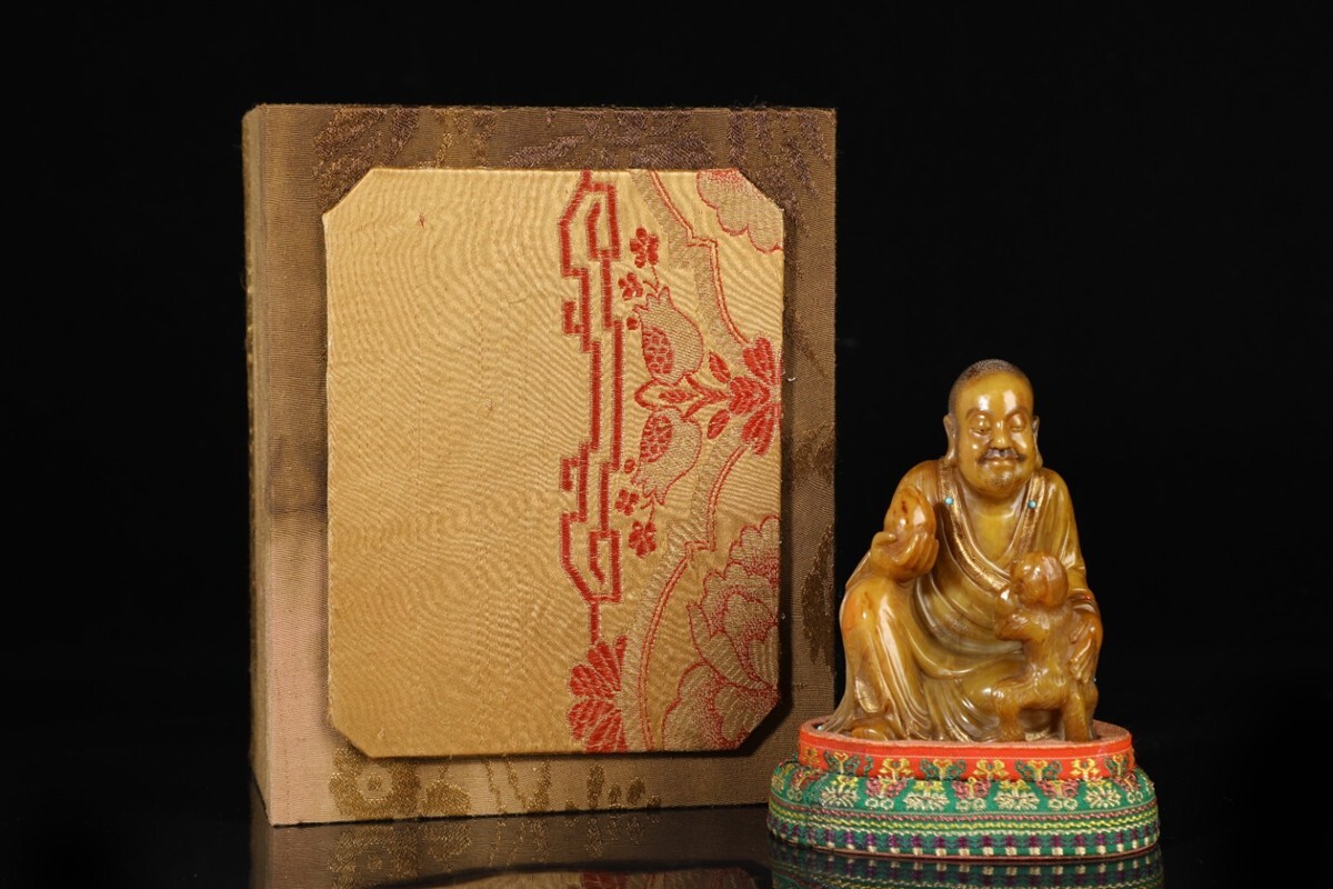 「清 魏開通 老寿山石 田黄石彫り 霊猴羅漢造像」極細工 擺件 古賞物 中国古美術 旧蔵出