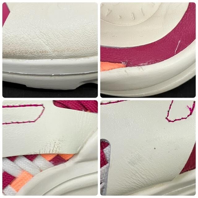 アウトソールに汚れ、黒ずみ、かかとにやや減りがございます