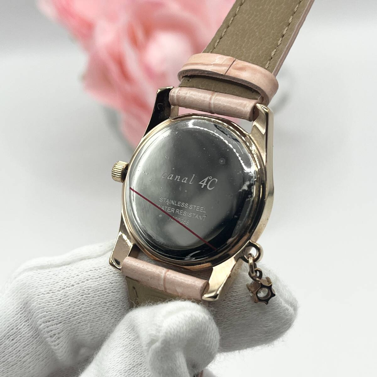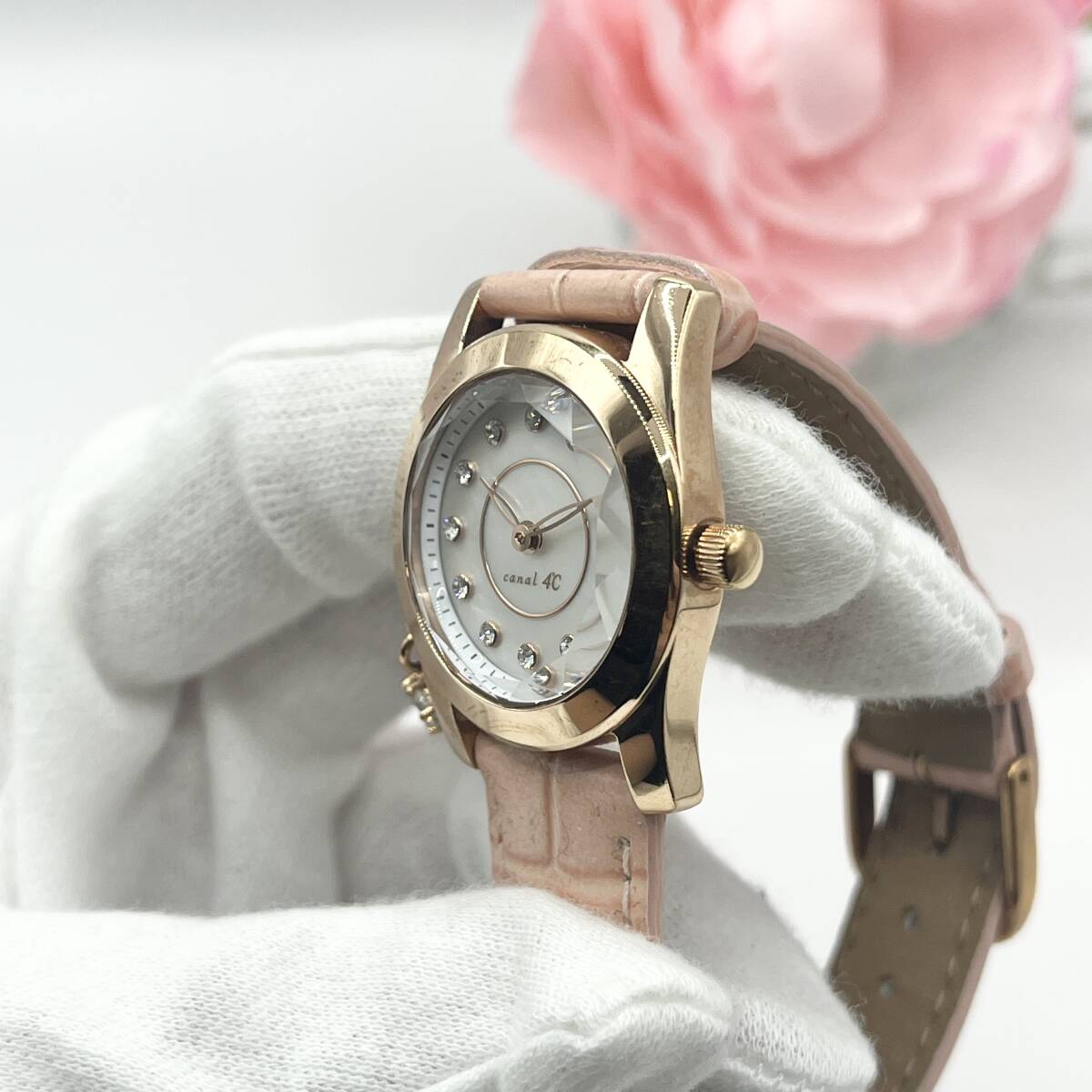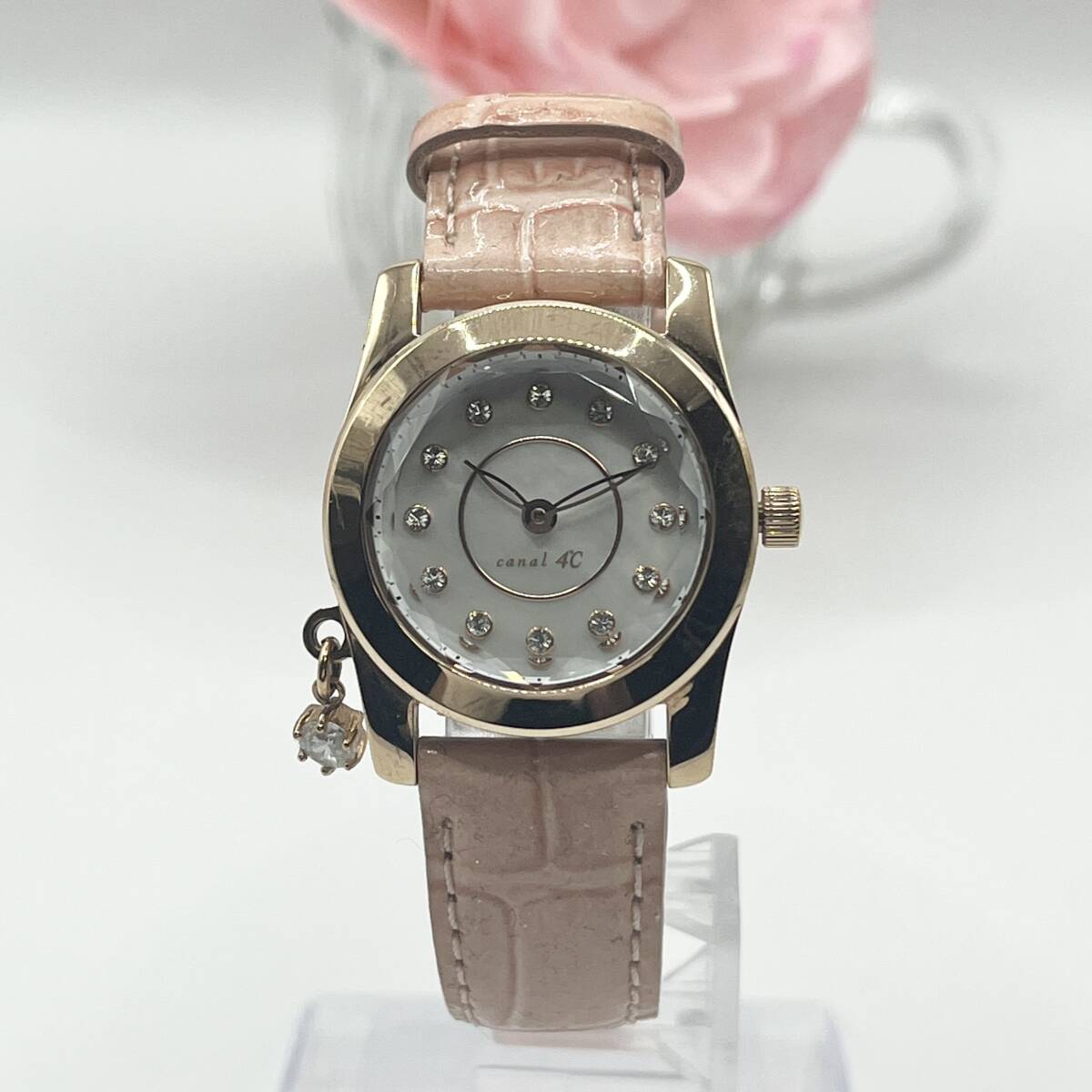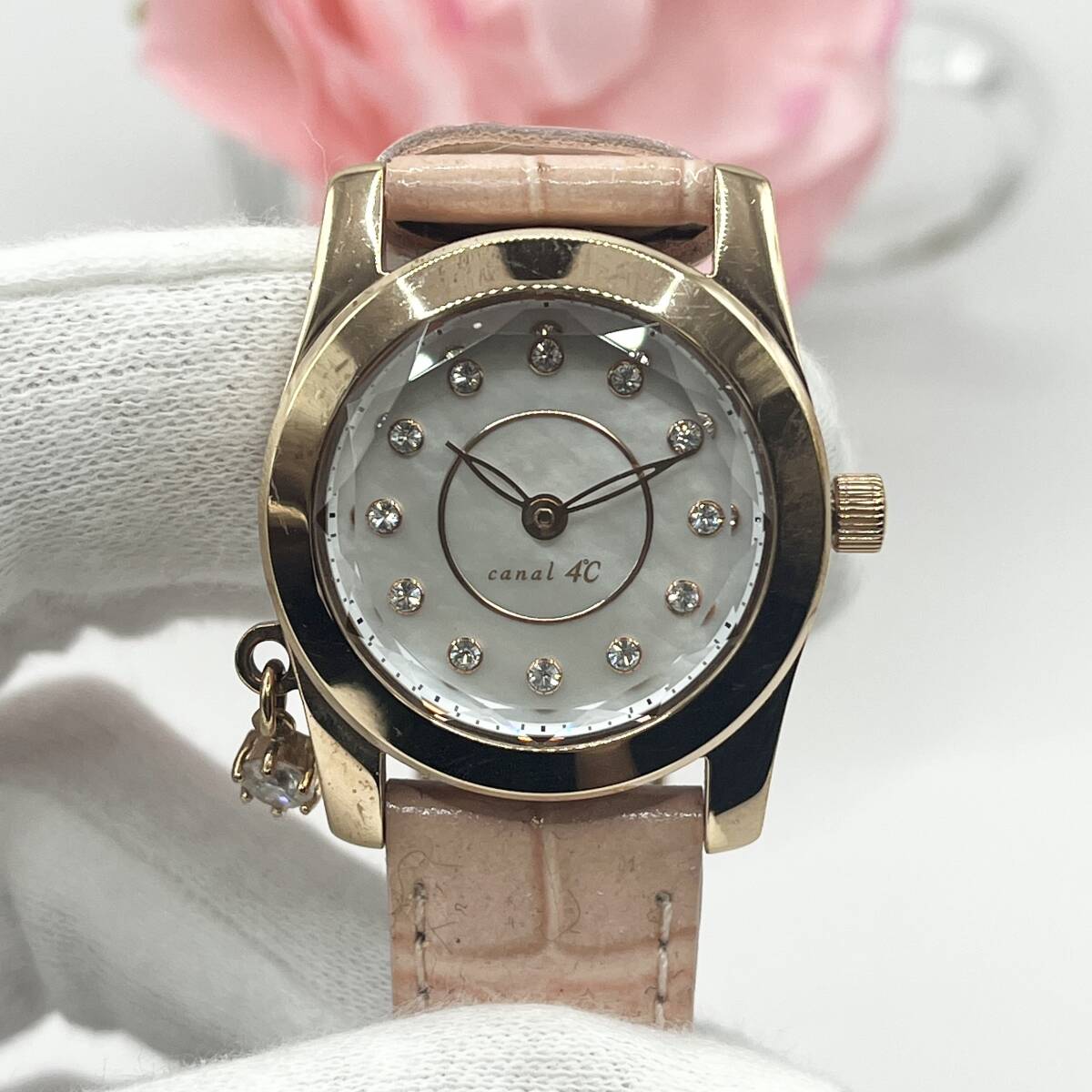 《稼働品》4℃★ヨンドシー★Canal★カナル★シェル文字盤★クォーツ 腕時計★レディース★クリスタルカット★ゴールド系★管理623a