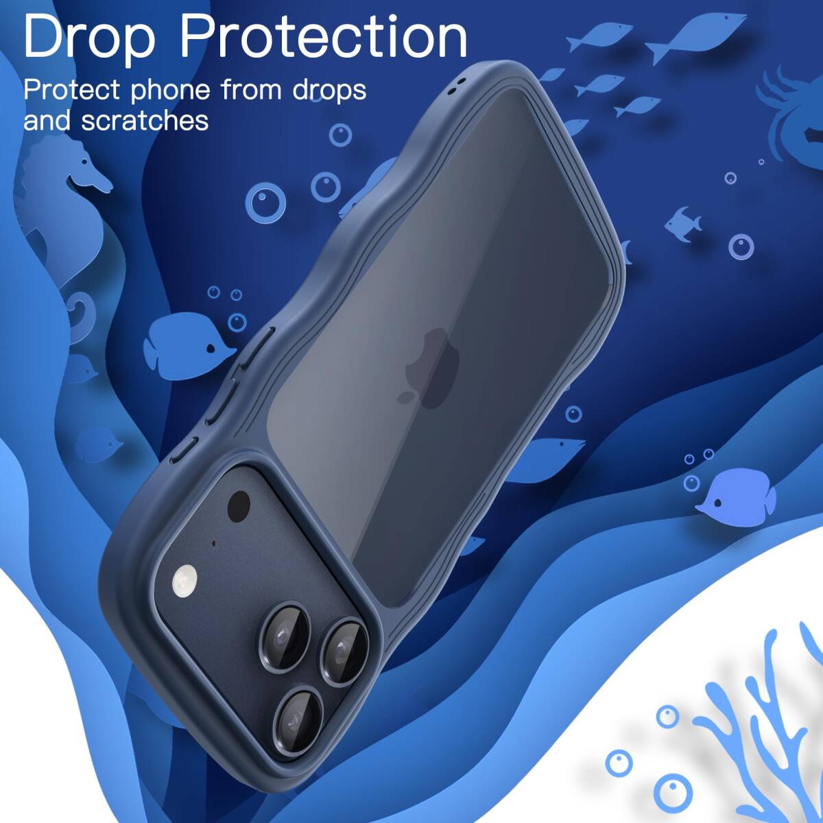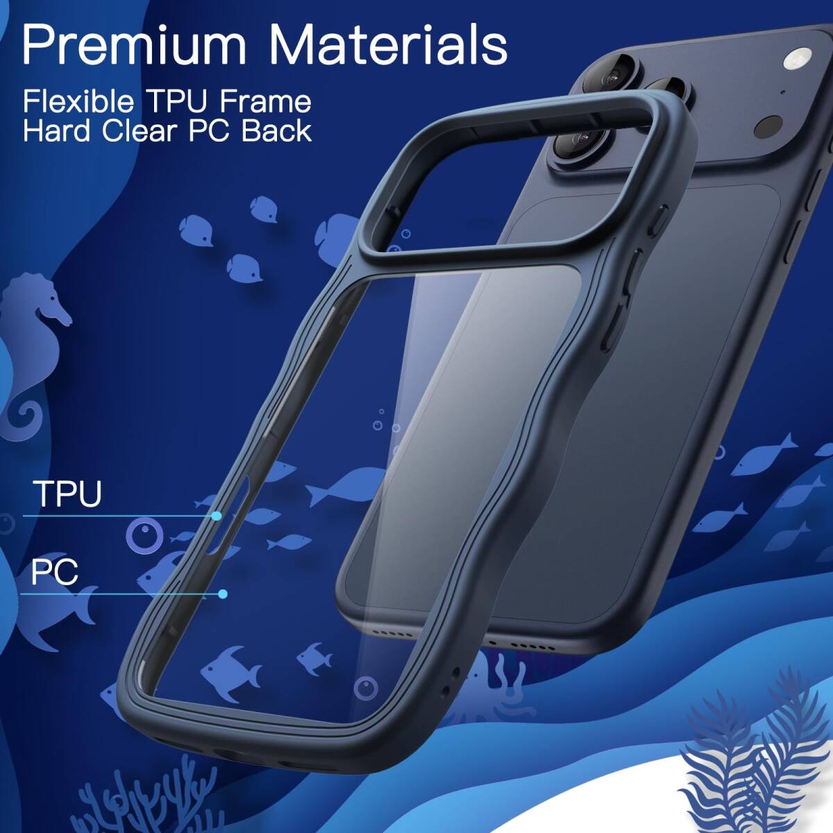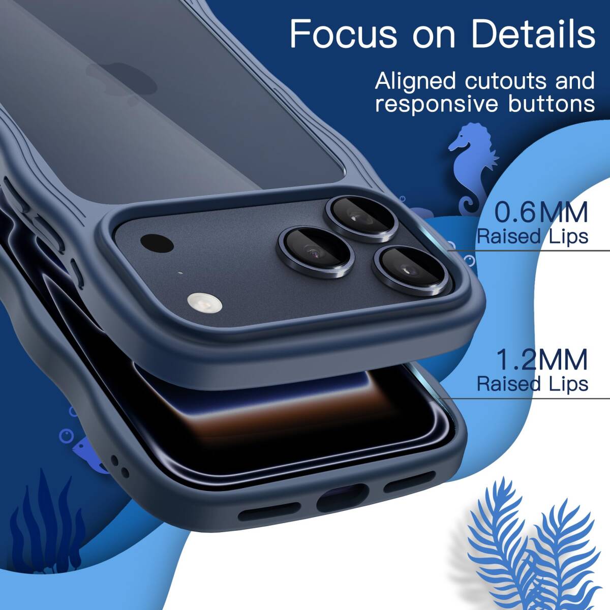 JETech iPhone 17 Pro 6.3インチ用 ウェーブ ケース かわいい 波状フレーム うねうね 耐衝撃 スマホカバー 女性用 女子向け クリア ハードPCバック (ダークブルー)