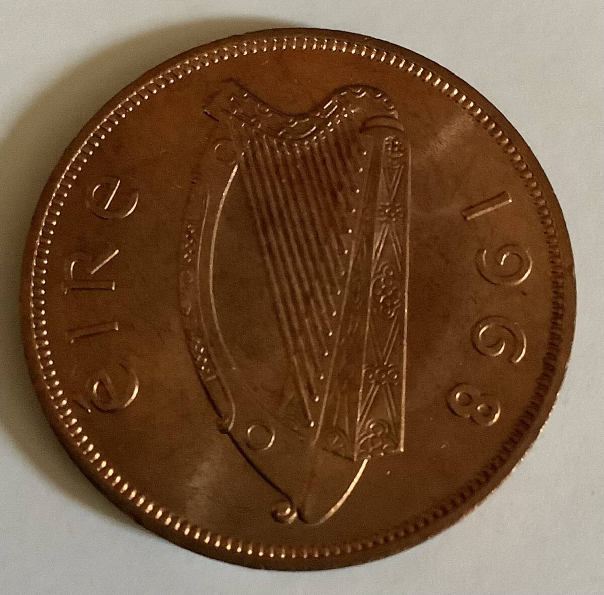 アイルランドの芸術家が造幣局長在任中に発行された青銅貨、未使用品として稀で、素敵なコレクションになる。