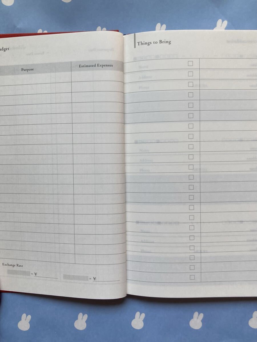 旅行表や支出表、便利なトラベルインフォメーションつきです。