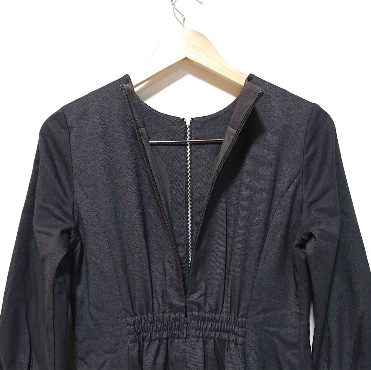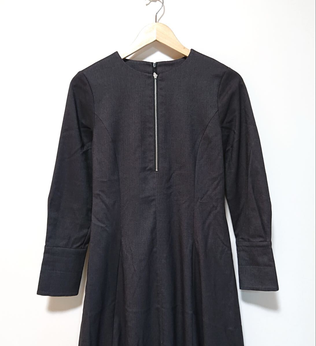 h4425gg NATURAL BEAUTY BASIC(ナチュラルビューティーベーシック)サイズM 長袖ロングワンピース グレー レディース レーヨン混 おしゃれ