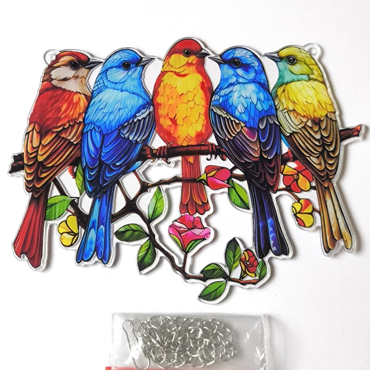 【5羽の鳥・ カラフル】アクリルプレート 飾り サンキャッチャー チェーン付き オブジェ お洒落 壁や窓辺の飾りに◎◎