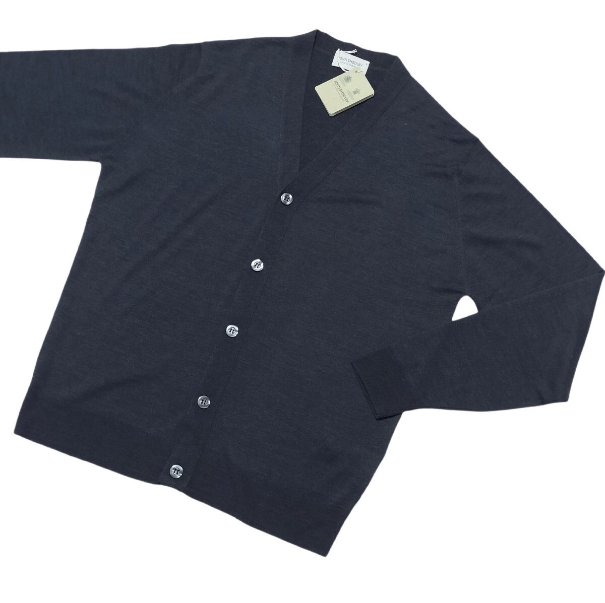 メンズ M ジョンスメドレー 最高級メリノウール Vネックカーディガン HALIN 煤色 HEPBURN SMOKE★