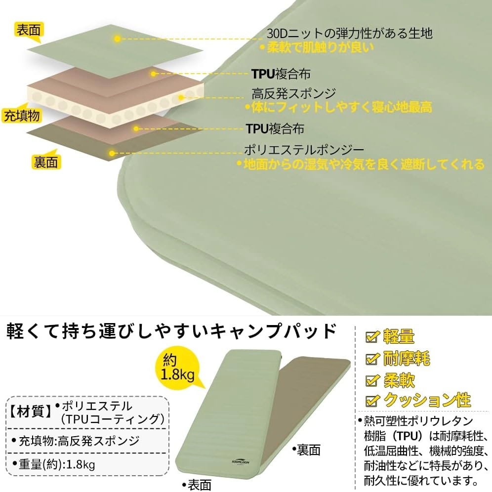 • 材質: 表面は弾力性がある生地の30DニットとTPU複合布を採用され、裏面はポリエステルポンジーとTPU複合布を採用され、しなやかで肌触りが良い、より快適な睡眠を楽しめます。