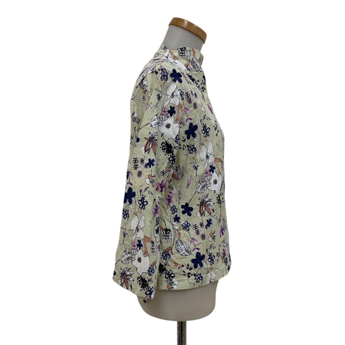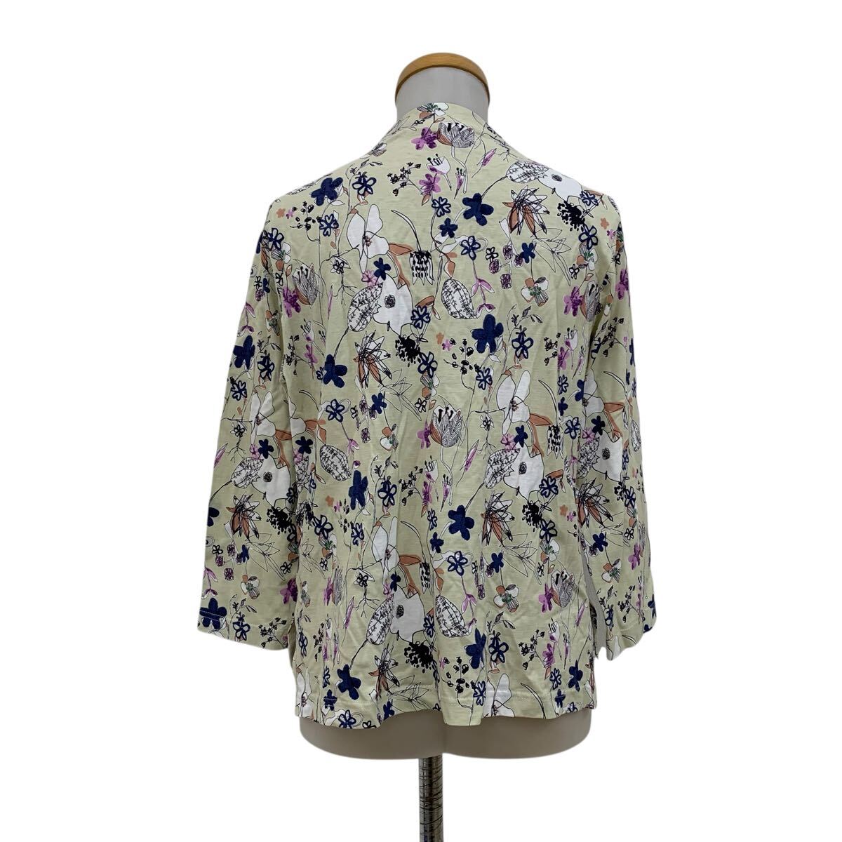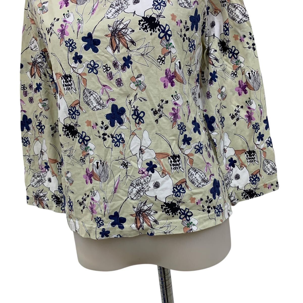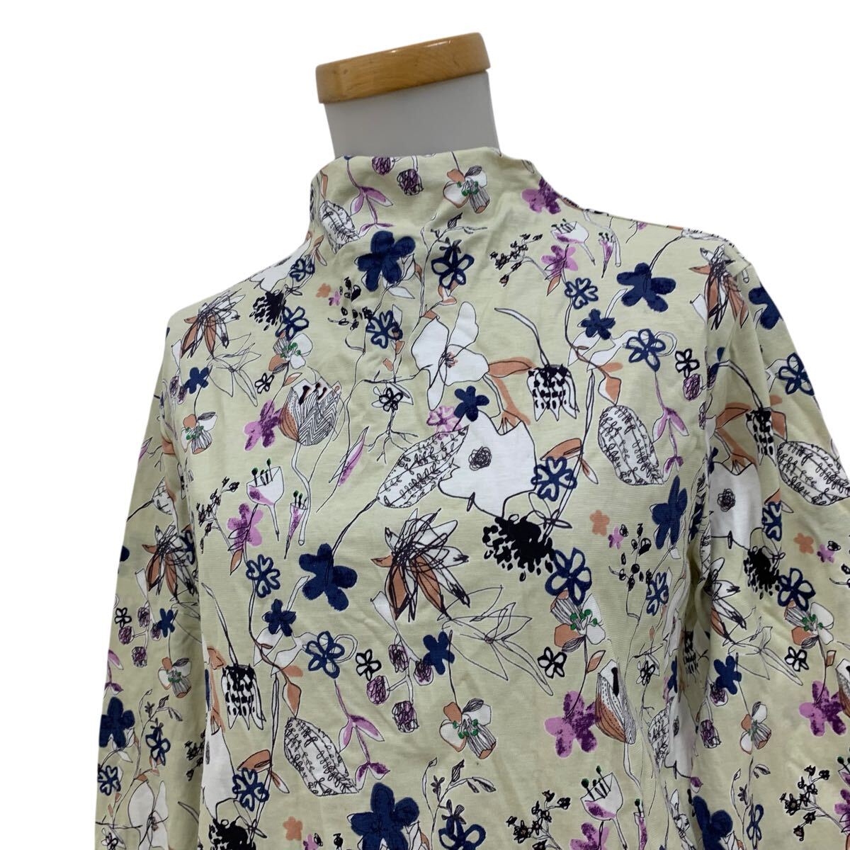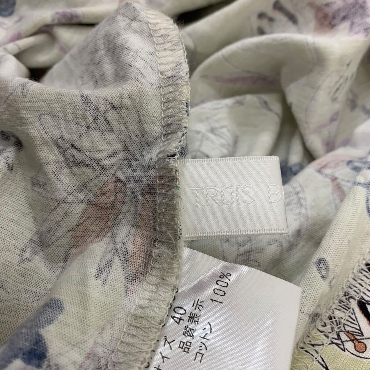 9NC322-44 TROIS BONHEURS トロワボヌール 花柄 七分袖 Tシャツ ティシャツ トップス カットソー レディース 40 ベージュ系