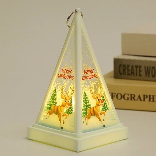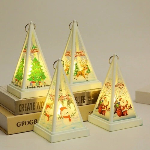 商品名 | christmas light 12個セット組販売 2024年NEW 三角形クリスマス 装飾LEDライト 4種類デザイン 本体ボディーホワイト色 点灯色暖色 1.5V単4電池2個使用 テスト電池付き 可愛い絵 エルク、雪だるま、クリスマスツリー、サンタクロース 店頭装飾やパーティー、イベント用に |