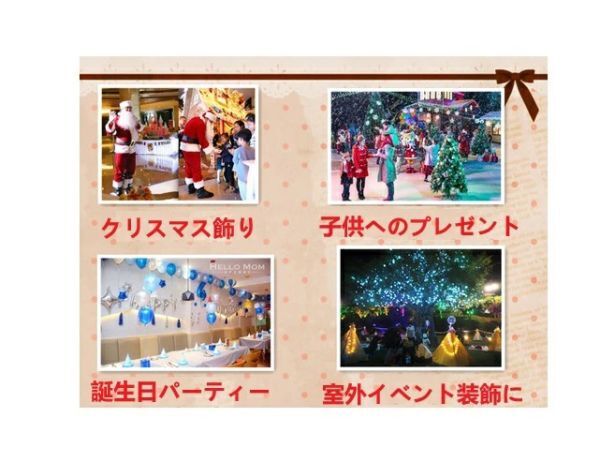 適用シーン | クリスマスイベント、店舗の装飾、プレゼント用などに |