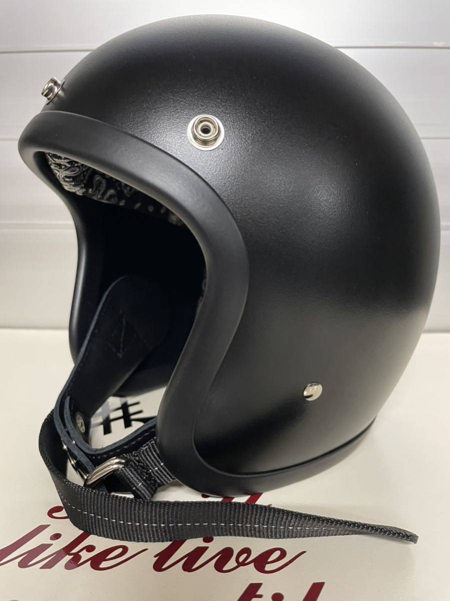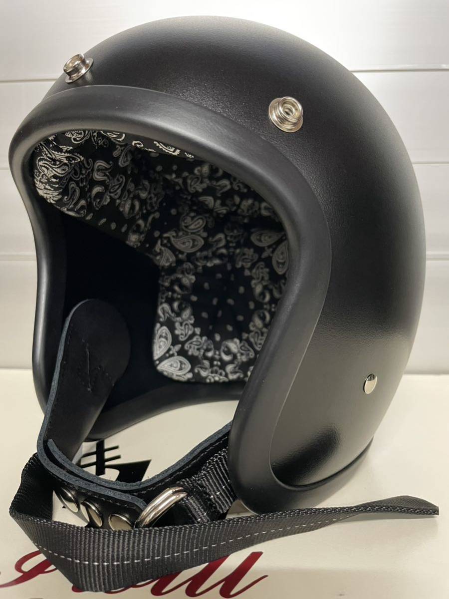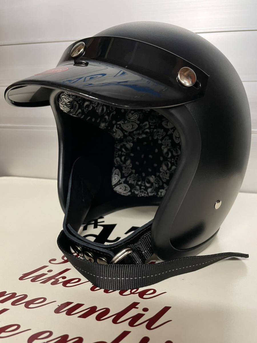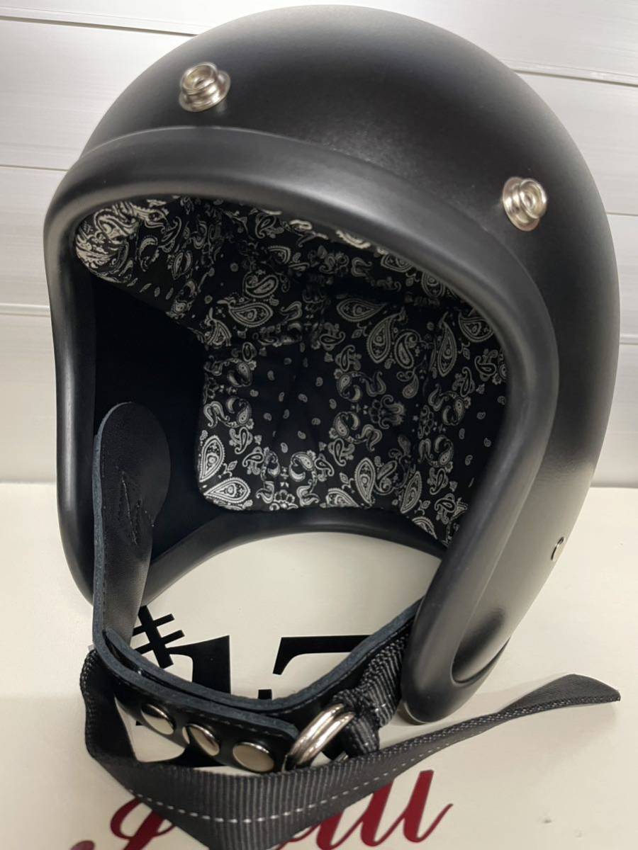 オールドヘルメットはダブルストラップの仕様が多く使われていて、金具、レザー部分がよりカッコ良さを引き立てます。
