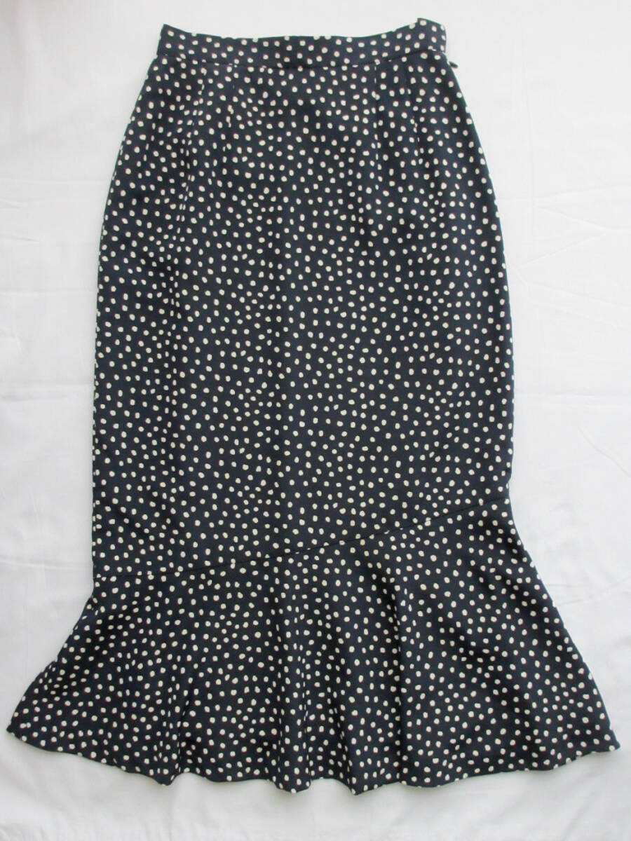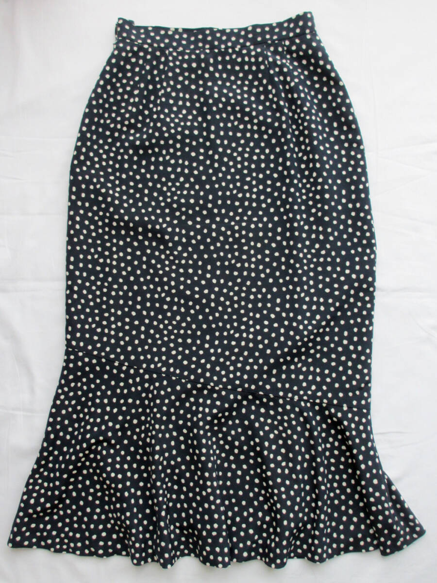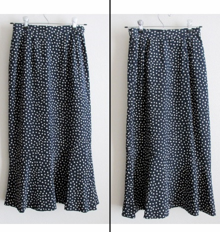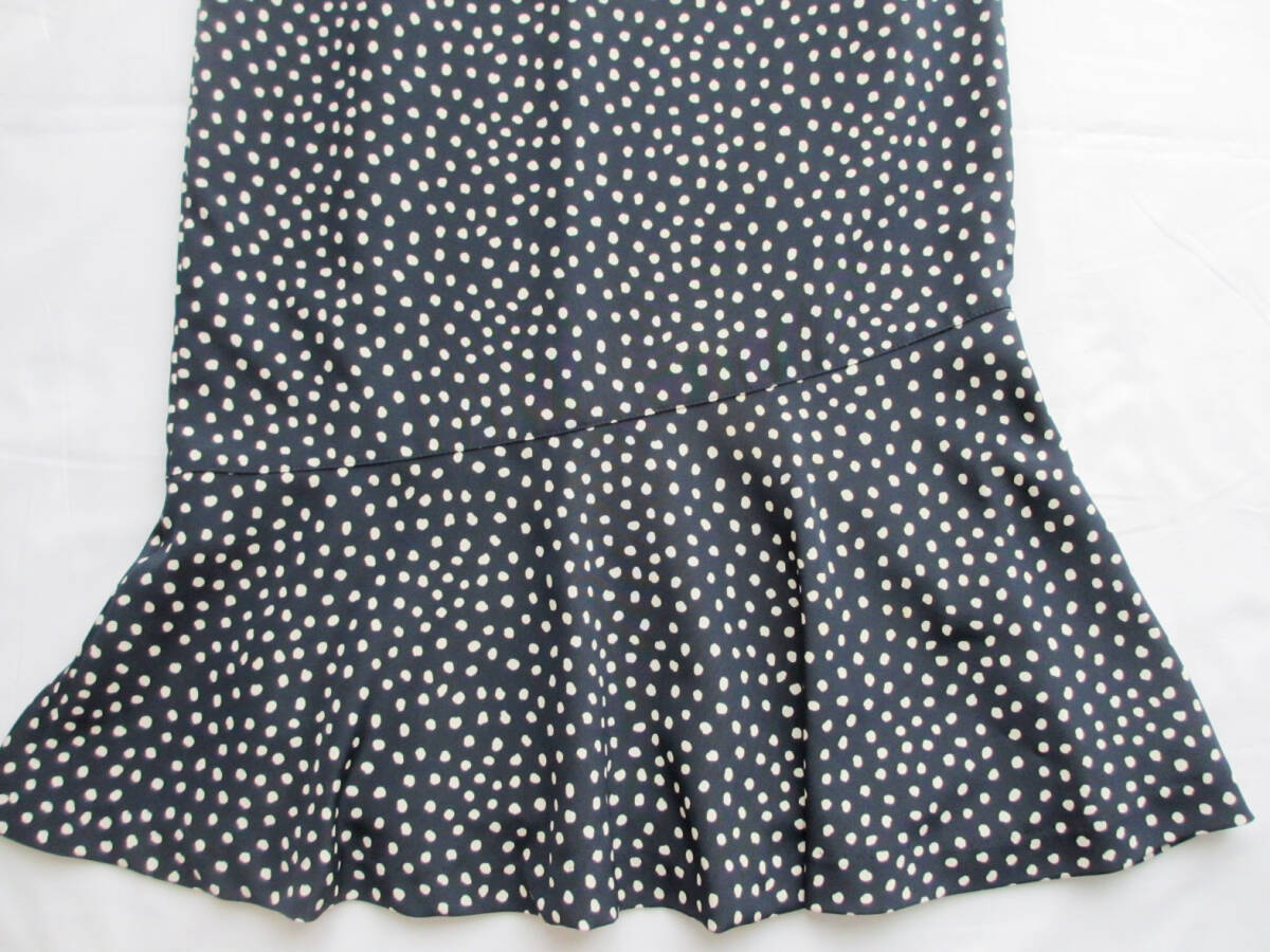 下の方に斜めに切り替えがあって裾にかけてフレアーが入っています(写真4枚目)。