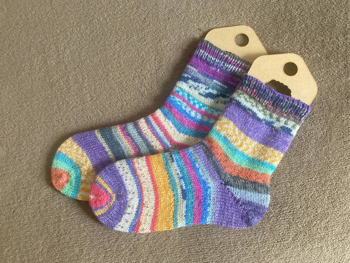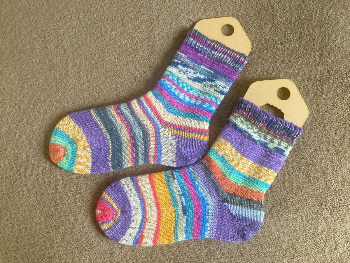 Opal毛糸_ランダム#1_23.0-23.5cm _手編み靴下_オパール毛糸_ハンドメイド_プチギフトにも#ハニスケ