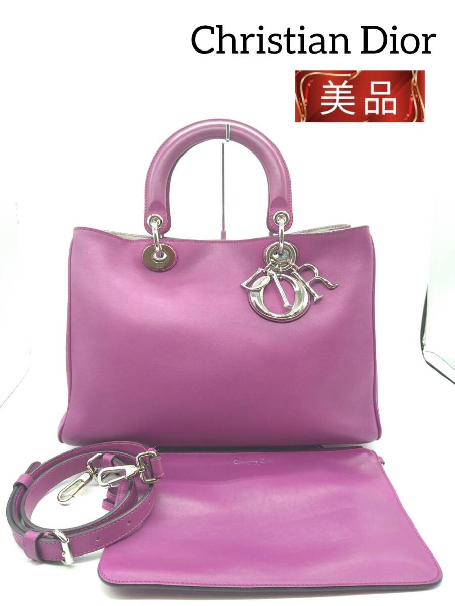 【美品】Christian Dior クリスチャンディオール ディオリッシモ 2WAYバッグ ピンクパープル×シルバー金具 ハンドバッグ ポーチ付き