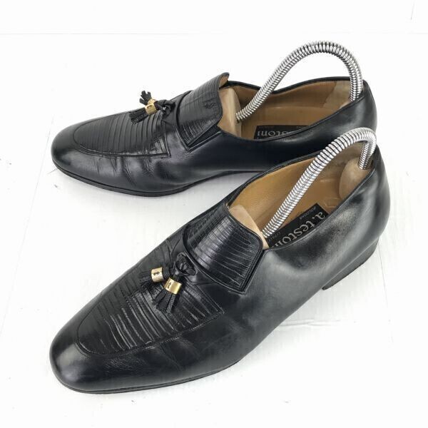 ◆商品説明◆ | ◆サイズ: 6・1/2 G(日本サイズ25.0程度) ◆最大甲幅:約9.5cm ◆アウトソール(全長):約27cm ※採寸の多少の誤差はご了承ください ◆お色: ブラック タッセルローファー(房飾りが付いたタイプの、ラグジュアリーなローファー) | |||||||||||||||||||