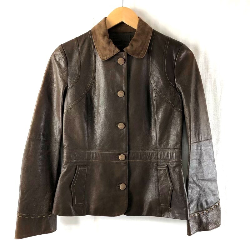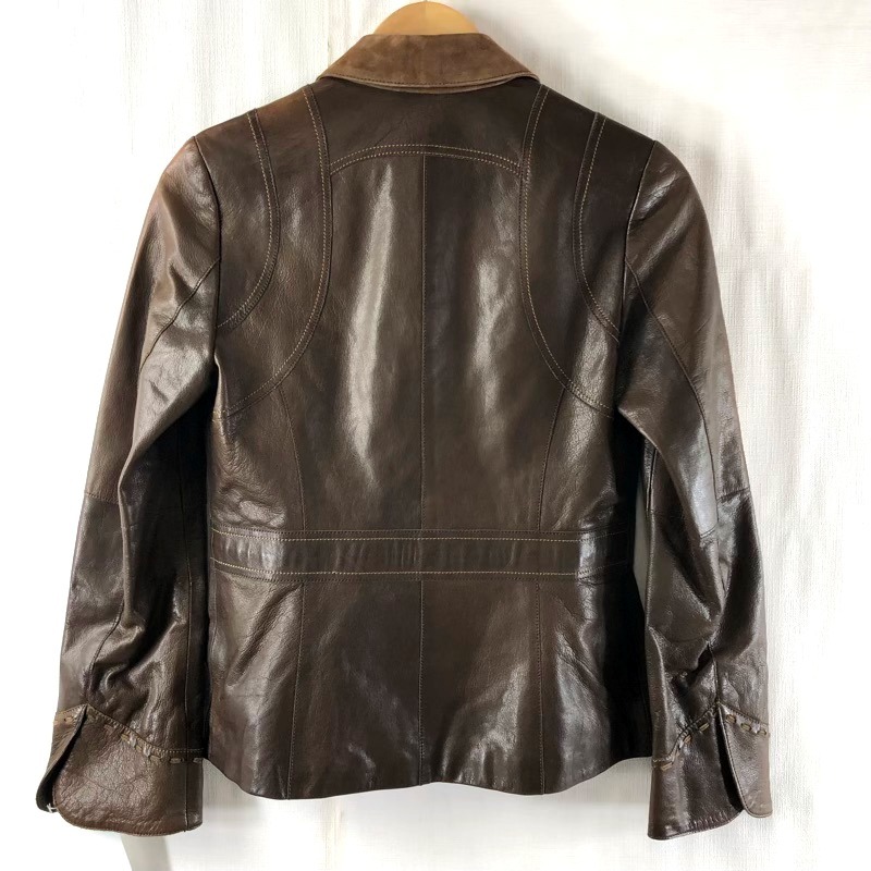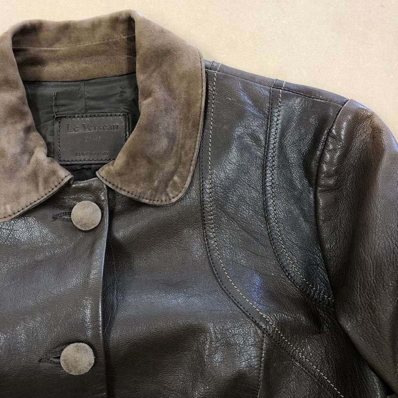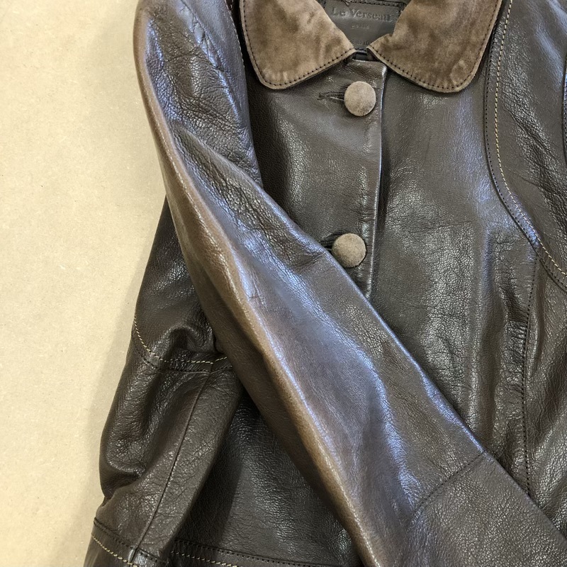 商品名 | ルヴェルソー Le Verseau ジャケット レザージャケット イタリア製 pelleレザー スウェード襟 丸ボタン ステッチデザイン ブラウン 42サイズ 958866 |