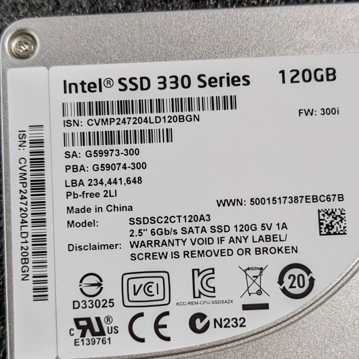 【中古】INTEL SSD 330 Series 120GB SSDSC2CT120A3 [2.5インチ SATA3 7mm厚 MLC 使用少なめ]