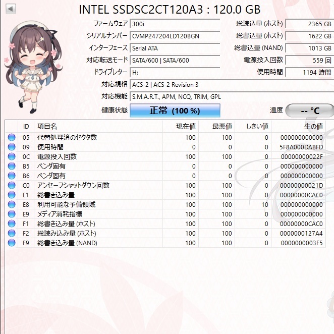 MLC時代のインテルのSSD、120GBのモデルです。