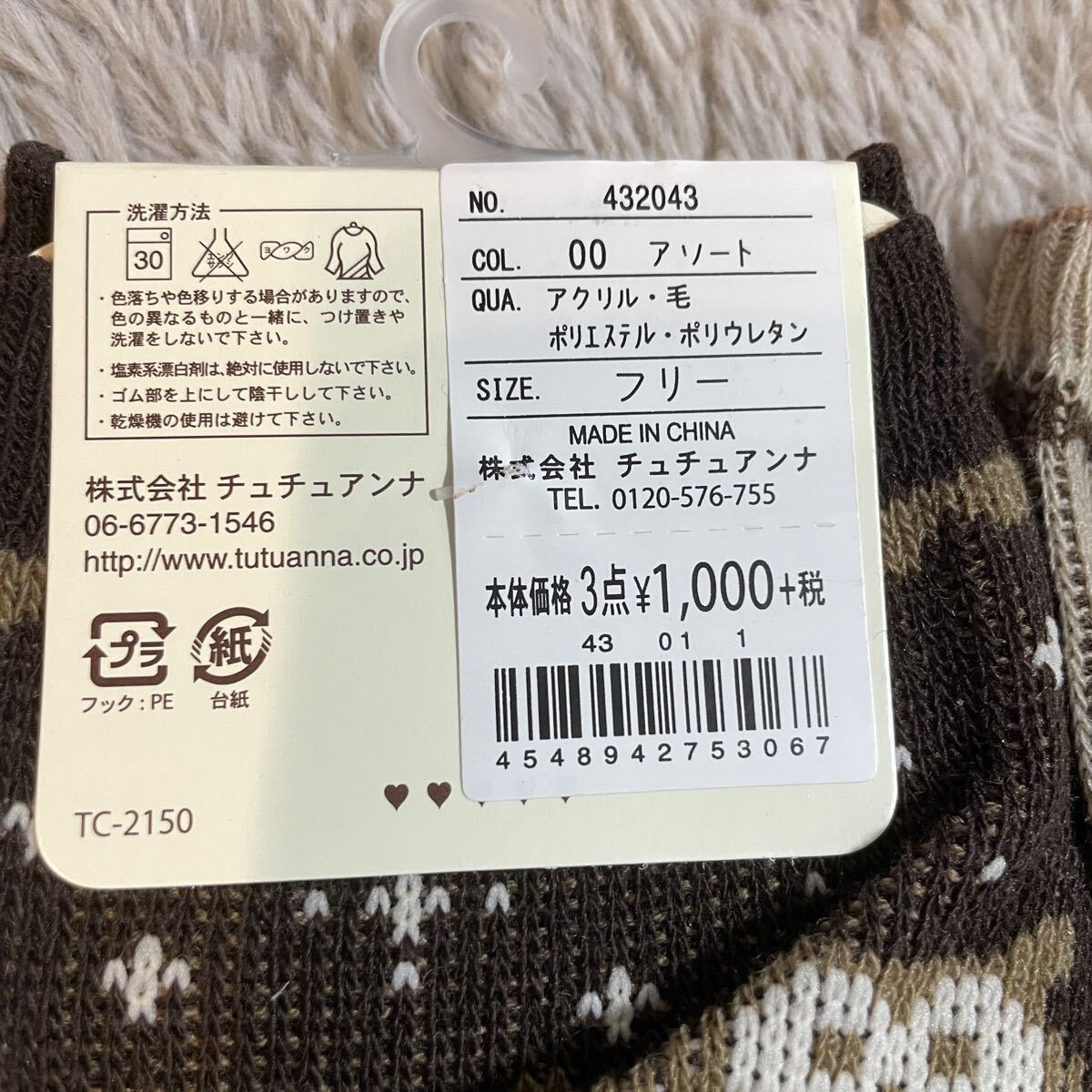 素材アクリル、ウール、ポリエステル、ポリウレタン