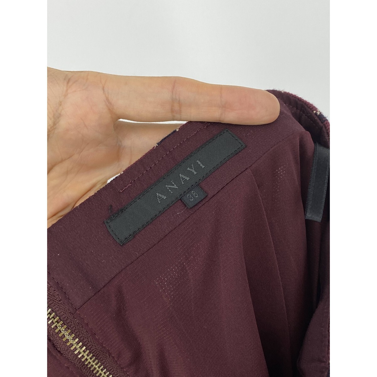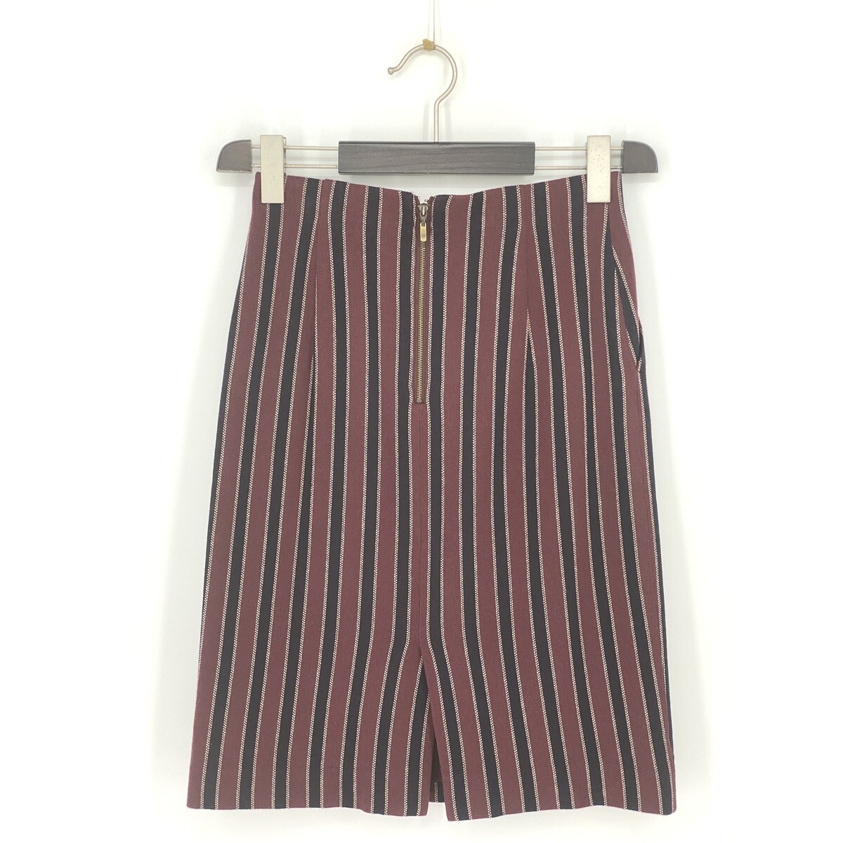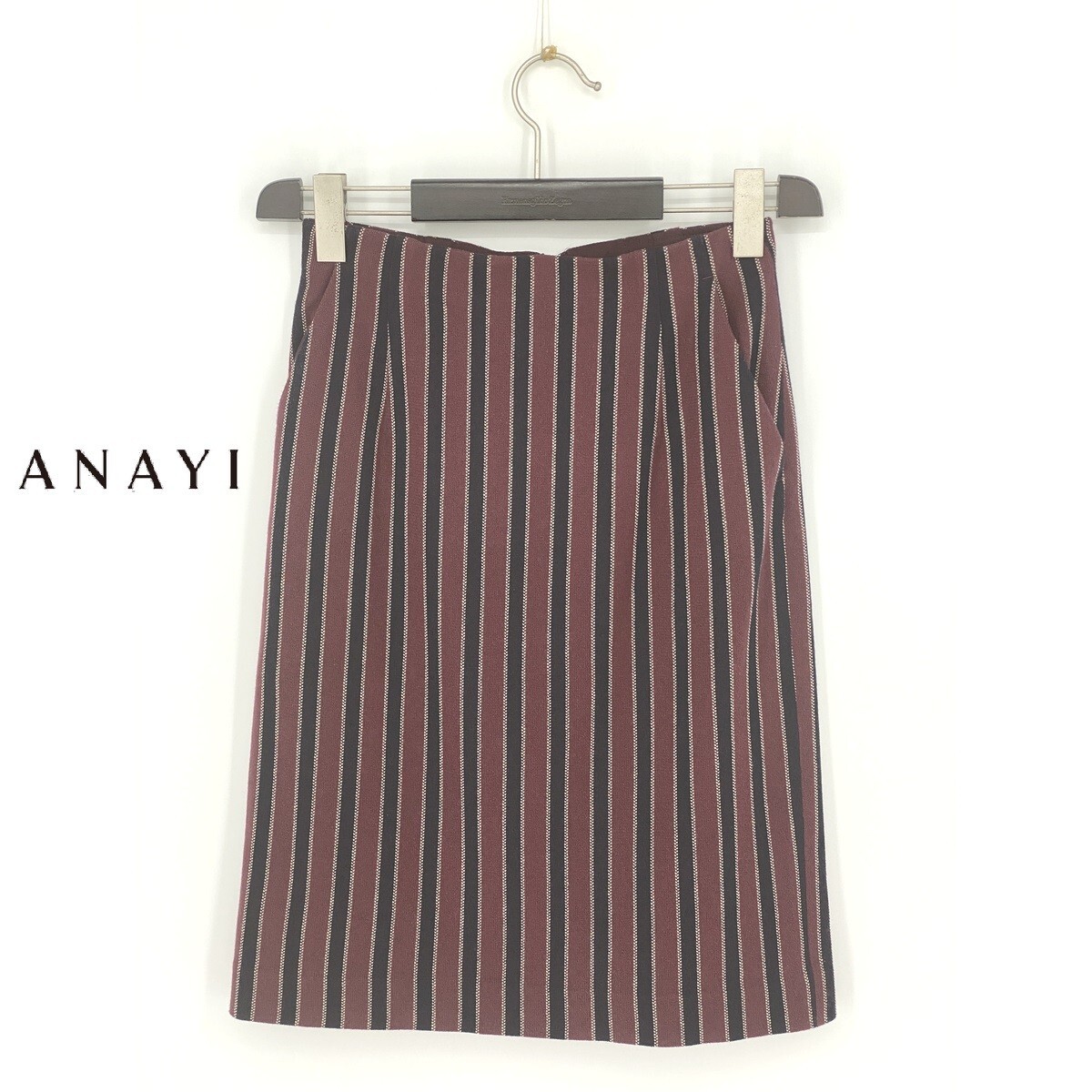 B0402/極美品 ANAYI アナイ コットン ストライプ ポケット タイト スリット ニット ミモレ丈 膝丈 スカート 38 M程 赤 日本勢 レディース