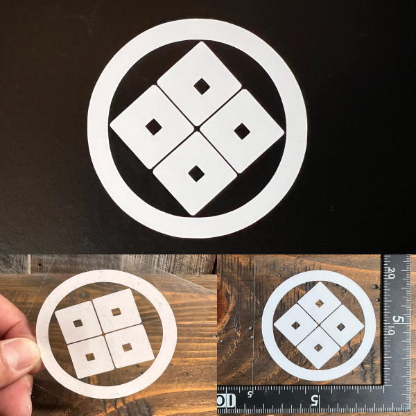【2枚セット/丸に隅立て四つ目】 家紋シール ステッカー 絵文字だけが残る 転写デカール 10カラー 色が選べる 1-Kamon.