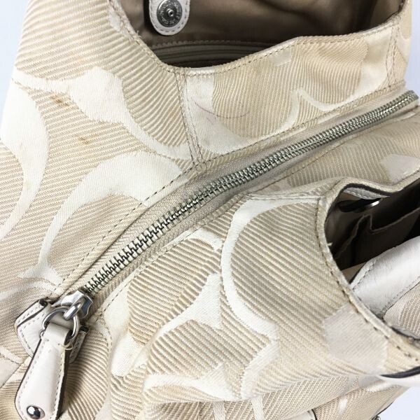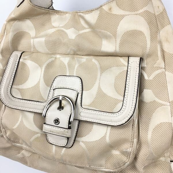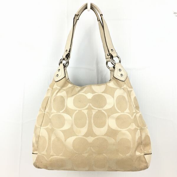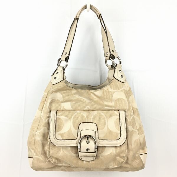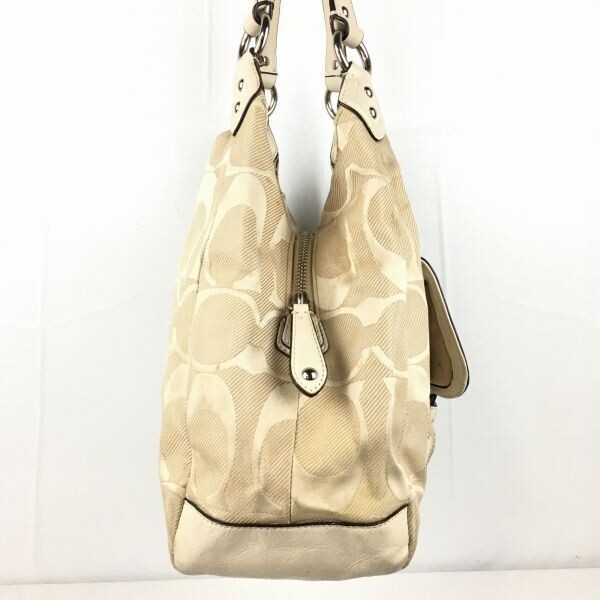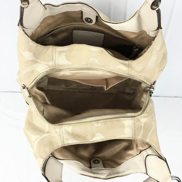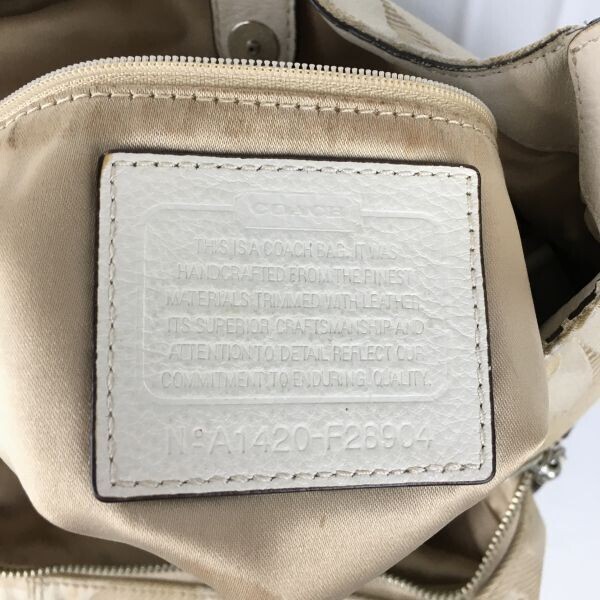 COACH ハンドバッグ ベージュ シグネチャー 3ヵ所別収納可能 管NO.WB1-32