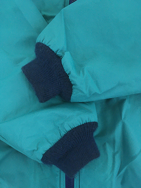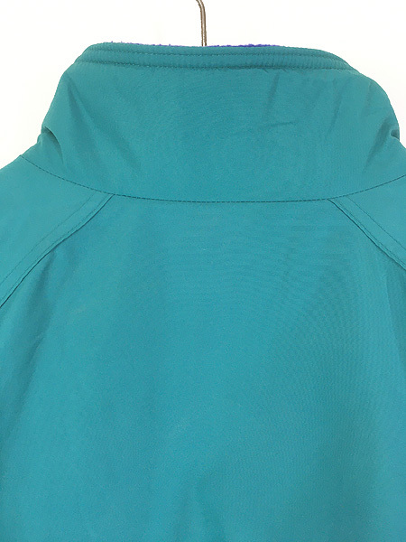 胸元刺しゅう・ハリのあるナイロンシェル・裏地フリース&袖裏地ナイロン・80sらしいターコイズ×パープルの配色も魅力。