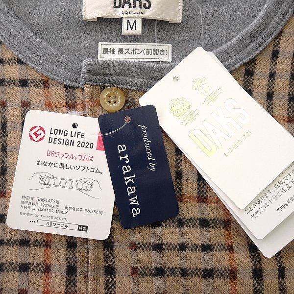 【DAKS LONDON】 英国を代表するブランド「ダックス」は、100年以上の歴史を誇る伝統と信頼のあるブランドとして高い評価を得ています。 英国王室御用達の証として3つのロイヤルウォラントを授与されています。 柔らかくナチュラルな伸縮性のあるコットン天竺素材を使用したセットアップパジャマ。 前見頃にはハウスチェックが施されており、上品な印象です。 左裾には【DAKS】タグが装飾され、ボタンにも刻印が入っています。 パンツは前開き付きで、ウエストにゴムを使用したストレスフリータイプ。 |