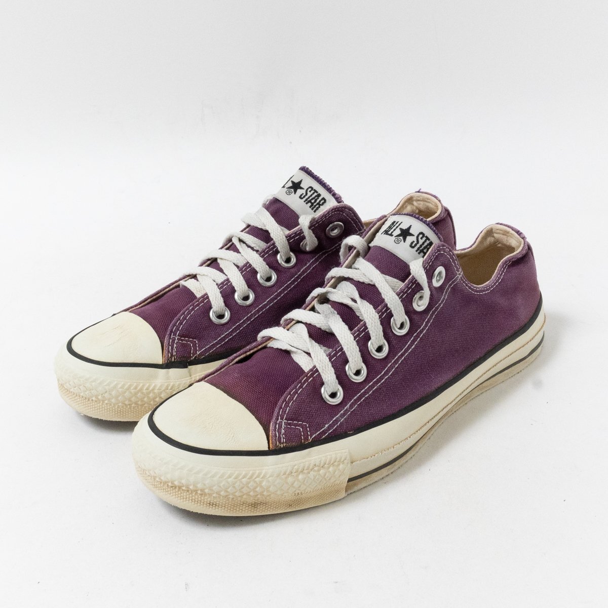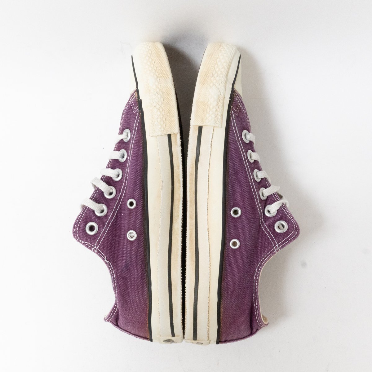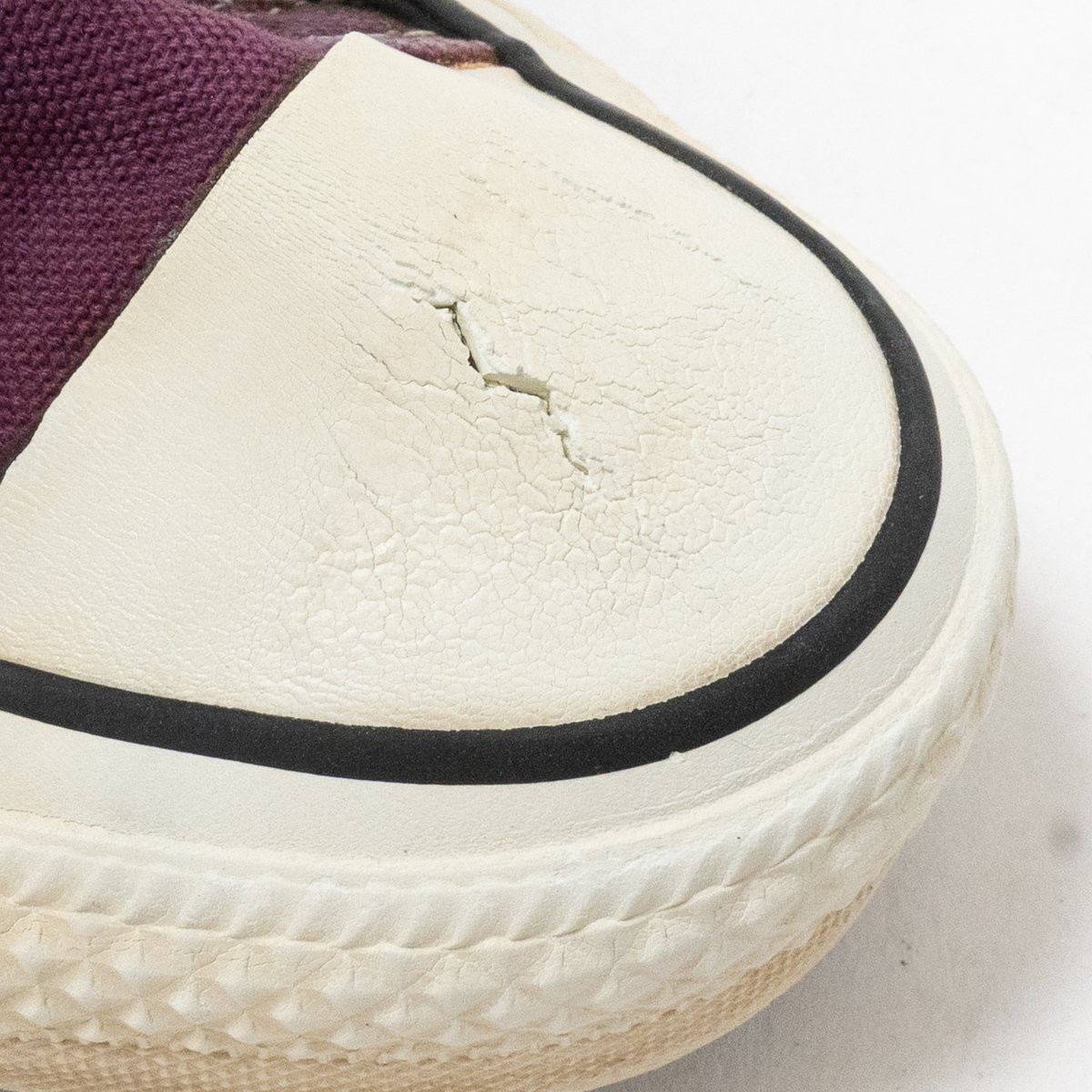 状態 | E 爪先ラバー経年劣化による割れ、キャンバス汚れ・色褪せ、紐汚れ、インナー汚れ・シミ、インソール汚れ・シミ、タン汚れ、ソールサイド汚れ・擦れ傷・変色、ソール汚れ・擦れ傷・擦り減り、ヒール6ミリ稀有れ、ヒールパッチ削れ、全体的に汚れと使用感あります。 |