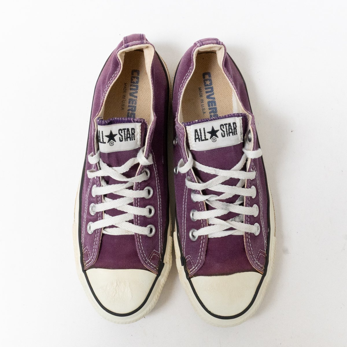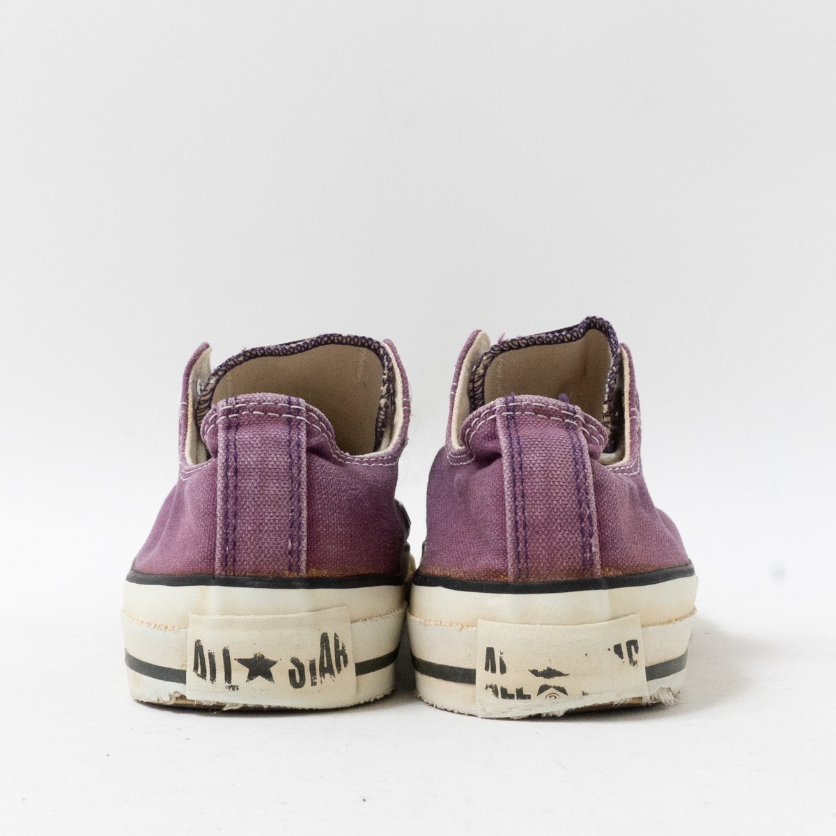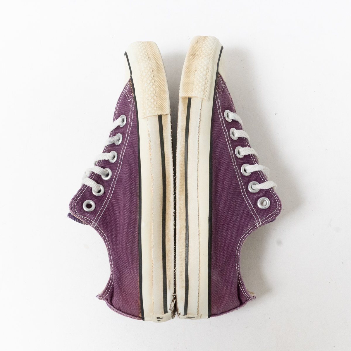 状態 | E 爪先ラバー経年劣化による割れ、キャンバス汚れ・色褪せ、紐汚れ、インナー汚れ・シミ、インソール汚れ・シミ、タン汚れ、ソールサイド汚れ・擦れ傷・変色、ソール汚れ・擦れ傷・擦り減り、ヒール6ミリ稀有れ、ヒールパッチ削れ、全体的に汚れと使用感あります。 |