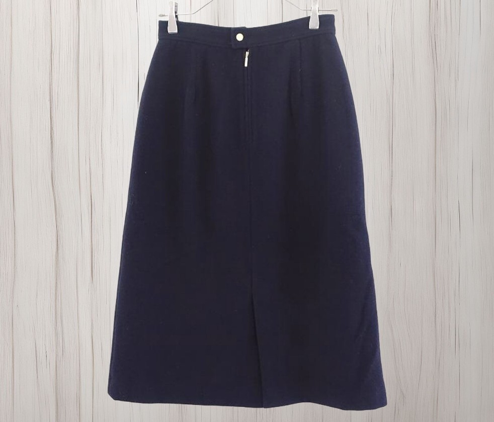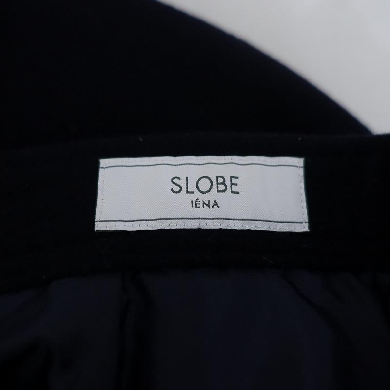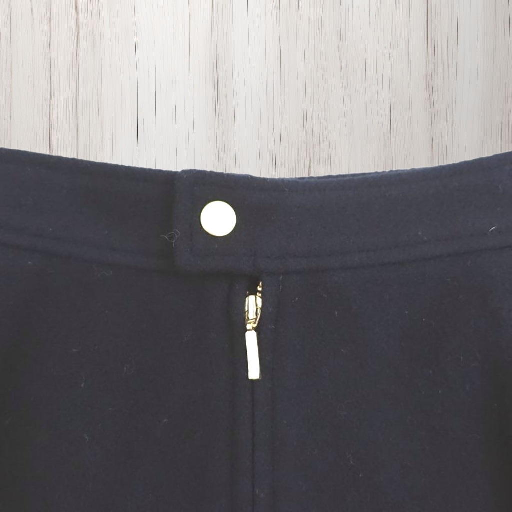 デザイン:SLOBE IENAのモッサAラインスカートです。カラーはネイビーで、起毛がかったウールモッサ素材で仕立てられています。後ろボタン&ファスナーで着脱でき、後ろ裾にスリット入り、両サイドにポケット、裏地付きです。