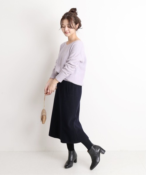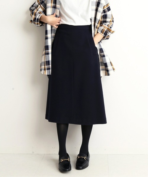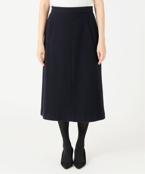 Aラインのシルエットですっきりとした印象のスカート。 しっかりとした風合いですが滑らかな肌触りで着心地の良い一枚。 生地にふくらみがあるので暖かみがあり秋冬にぴったり! きれいめにも使えるのでオンオフ問わず着回せる万能アイテムです!
