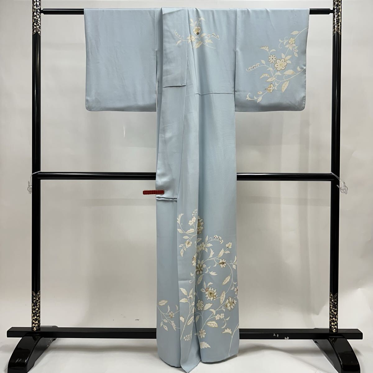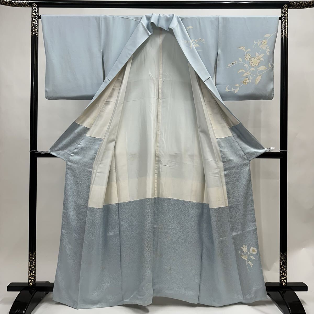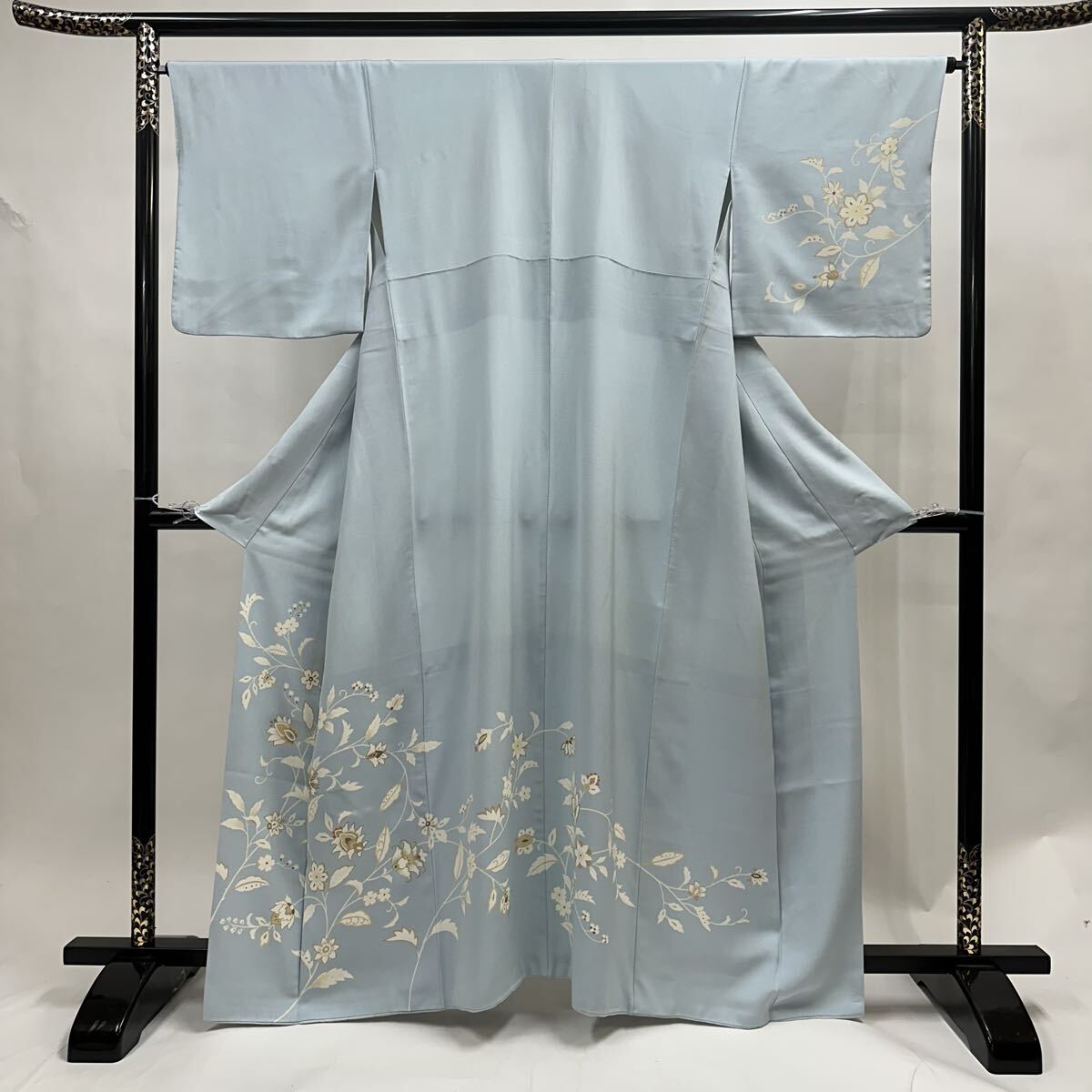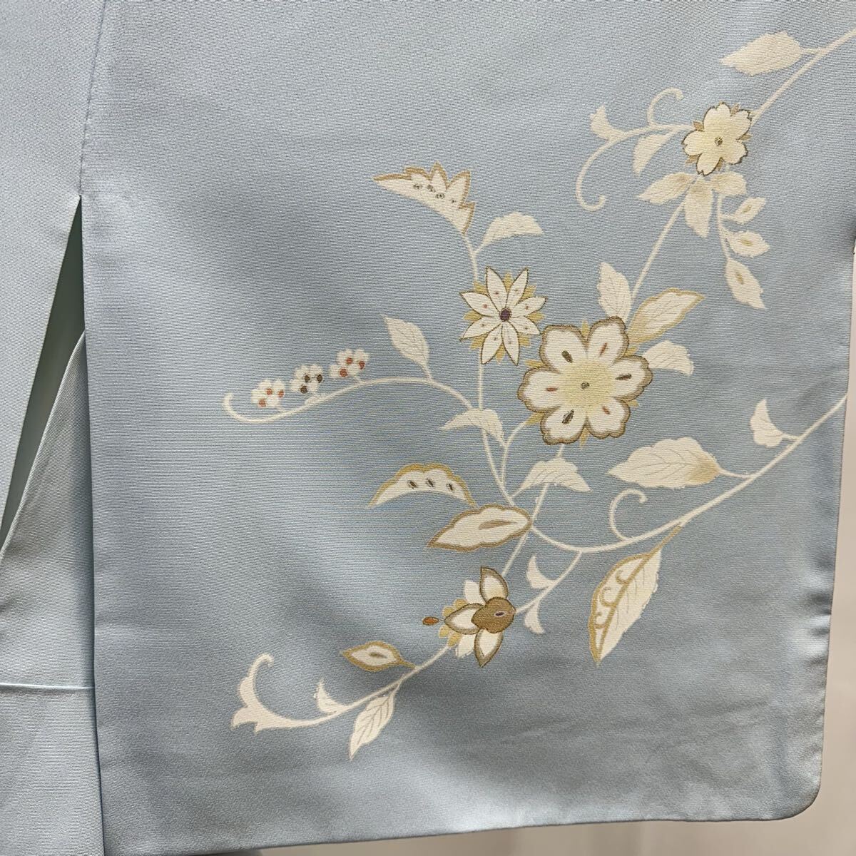 【七福】c891 訪問着 正絹 袷仕立て 唐花 金駒刺繍 着物 逸品 身丈 約159.5cm 裄 約66cm