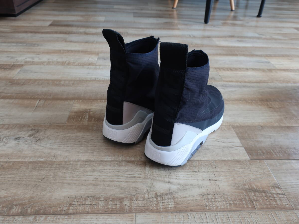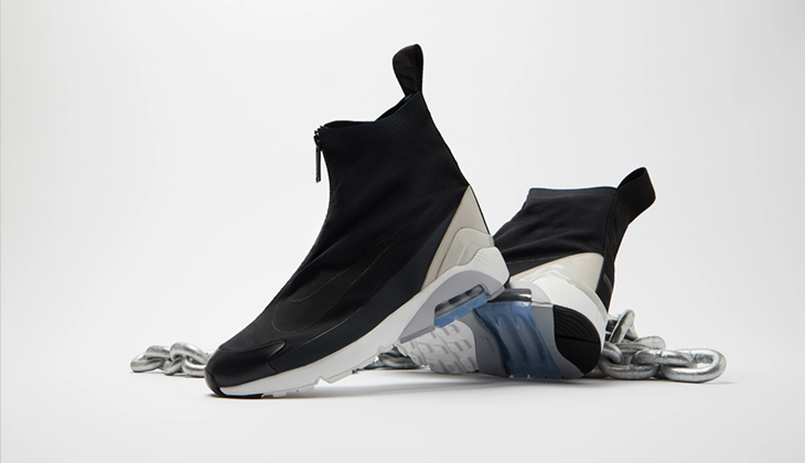 アッパーにシュラウドを装着しハイカットのシェルエットに仕立て上げられ、現代のファッションシーンにマッチした仕上がりになっています。