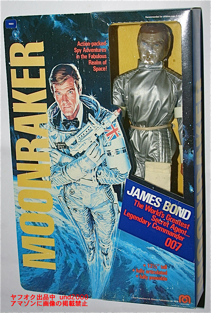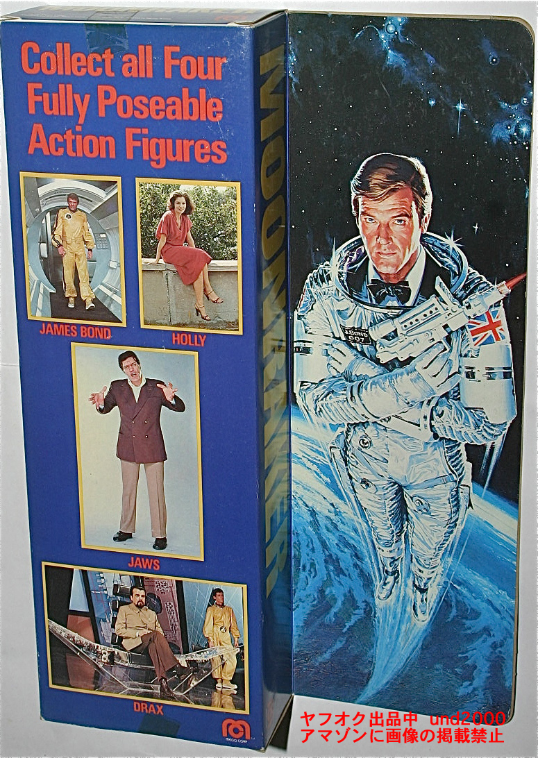 Mego 社製。「007 ムーンレイカー」 Moonraker、James Bond (ロジャー・ムーア)のフィギュア。1979年、映画公開時の当時もの。ホンコン製。フィギュアの全長約31センチ。箱は開封されていますが、フィギュアは固定されたままの未使用品になります。このフィギュア特有の顔の肌色の塗装が経年劣化でなくなり、プラスチック地のグレーになっています。髪の毛の塗装部、ブーツにやはり塗装のべたつきがあります。箱は若干のスレ、色あせがあります。箱窓部の透明プラスチックに小さな穴があります。古いものですのでノークレームでお願いします。お支払いはヤフーかんたん決済のみ。東京発、ゆうパック持込80サイズ(東京1010円 - 沖縄1690円)、または定形外郵便 (保険無し)920円の発送となります。(上記の送料はこの出品物のみの料金となります。複数落札、同梱包発送の場合、重さ、サイズが変わりますので送料 が変わります。)3日以内のご連絡、かんたん決済の支払期限内(通常5日、支払方法により異なります)のお支払い厳守でお願いします。入札される前に「自己紹介」もあわせてお読みください。