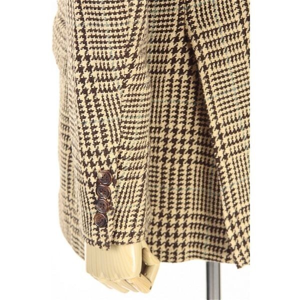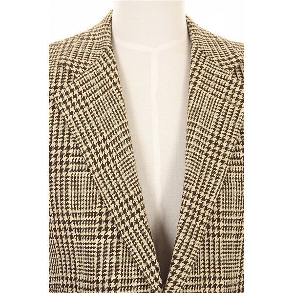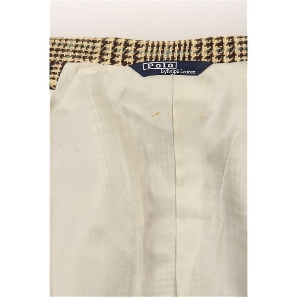 A4946/美品 秋冬 POLO RALPH LAUREN ポロラルフローレン コットン ツイード チェック テーラード シングル2Bジャケット 94A6 黄色/メンズ